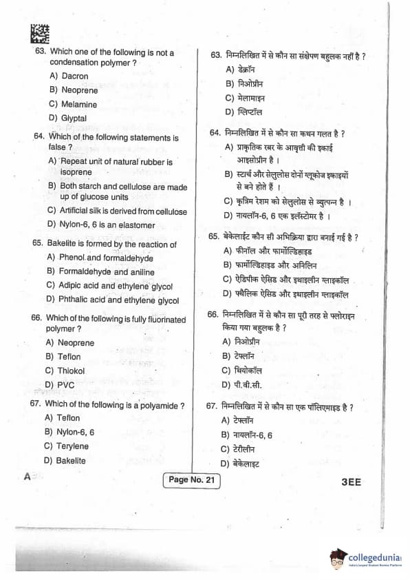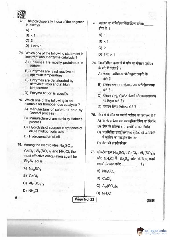 JEECE 2017 Chemistry Code A Question paper with answer key pdf conducted on May 13, 2017 is available for download. The exam was successfully organized by Jharkhand Combined Entrance Competitive Examination Board (JCECEB). The question paper comprised a total of 50 questions.