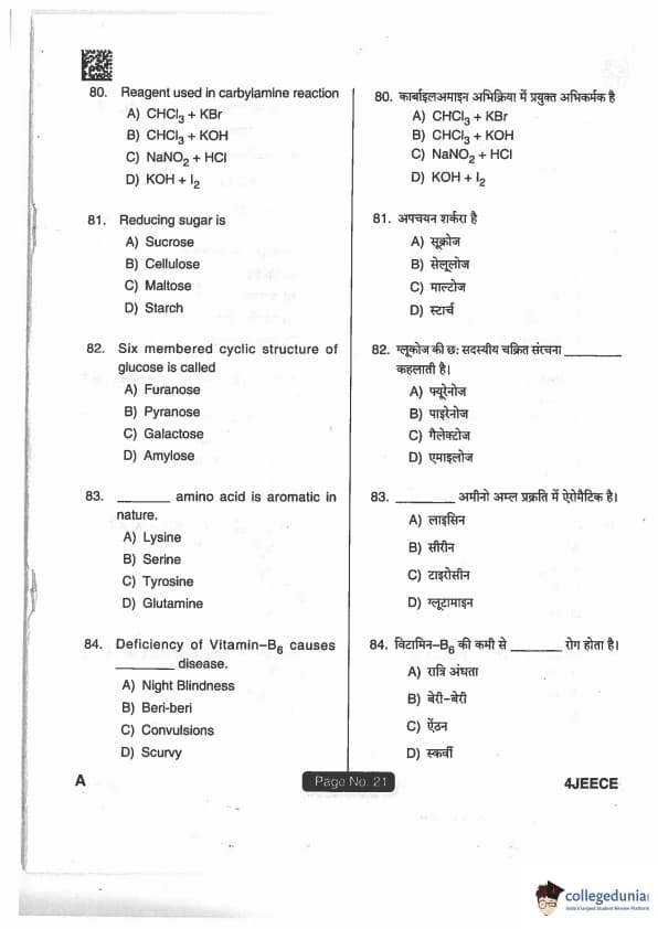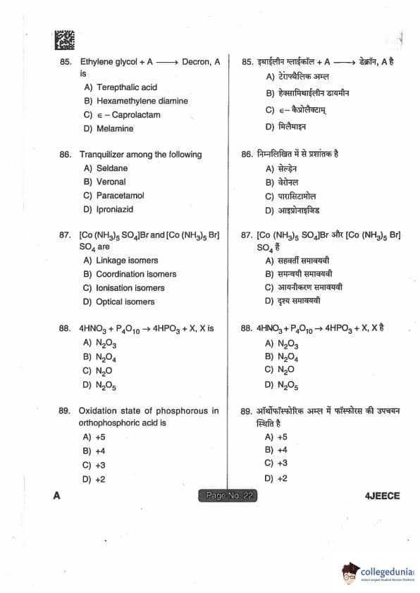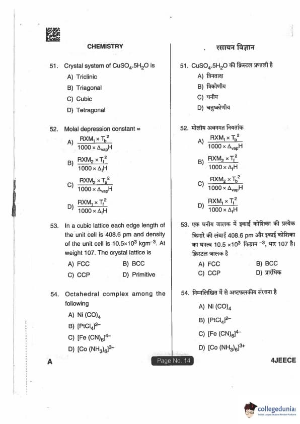 JEECE 2018 Chemistry Code A Question paper with answer key pdf conducted on May 26, 2018 is available for download. The exam was successfully organized by Jharkhand Combined Entrance Competitive Examination Board (JCECEB). The question paper comprised a total of 50 questions.