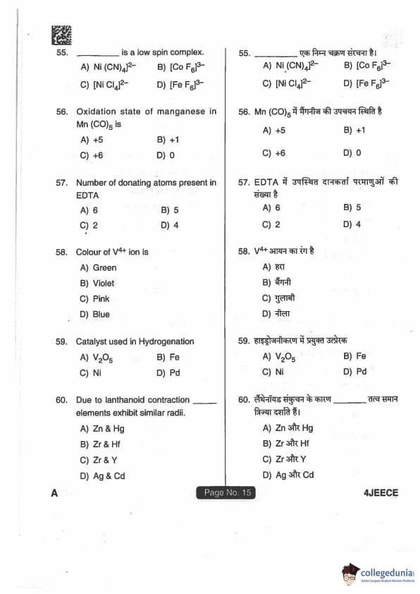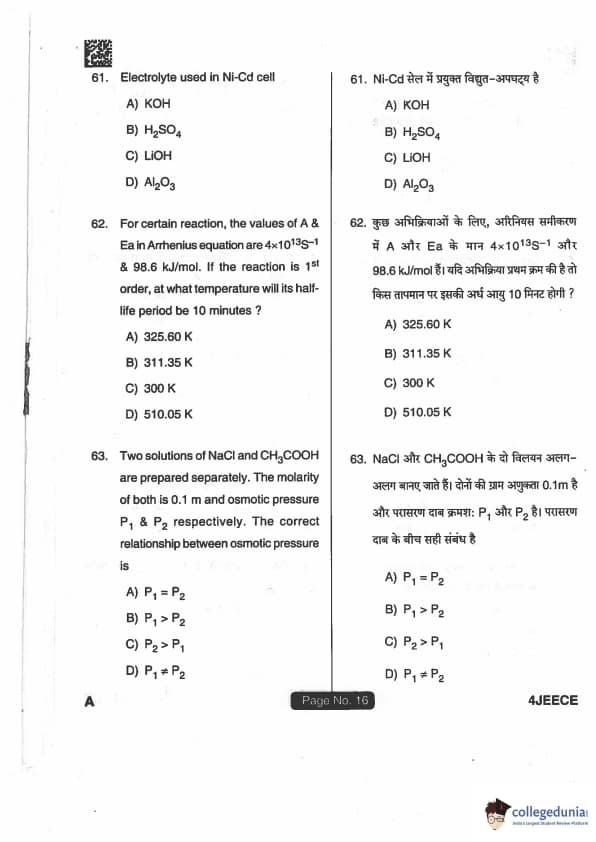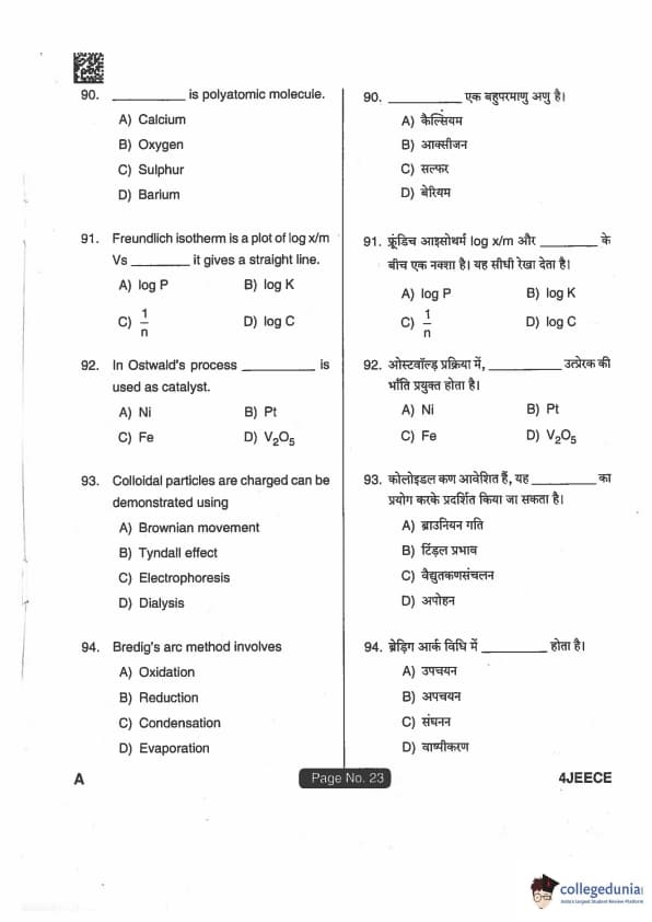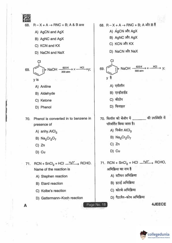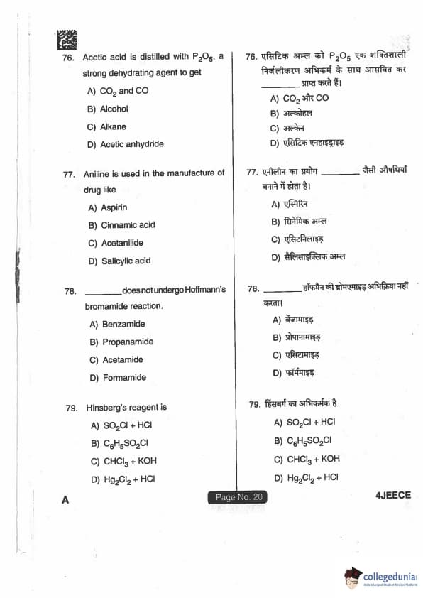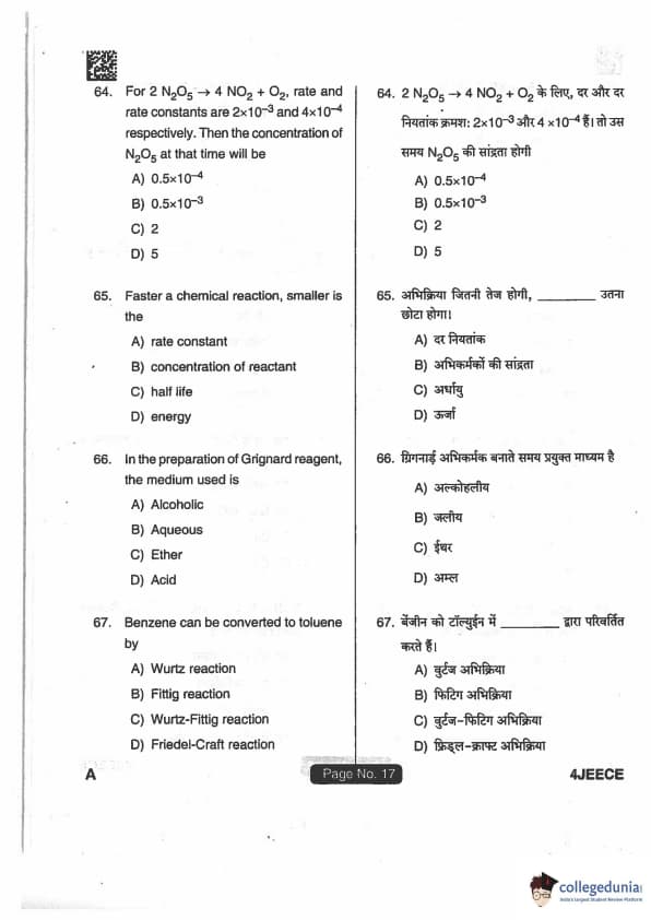 JEECE 2018 Chemistry Code A Question Paper with Answer Key PDFs