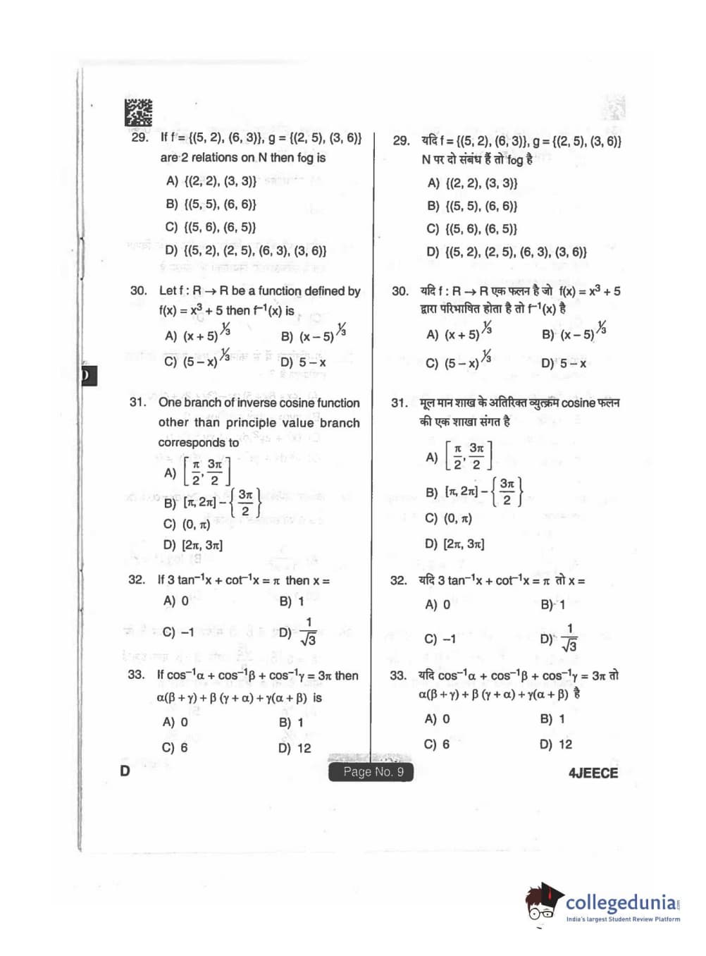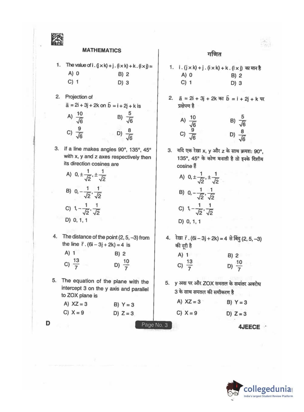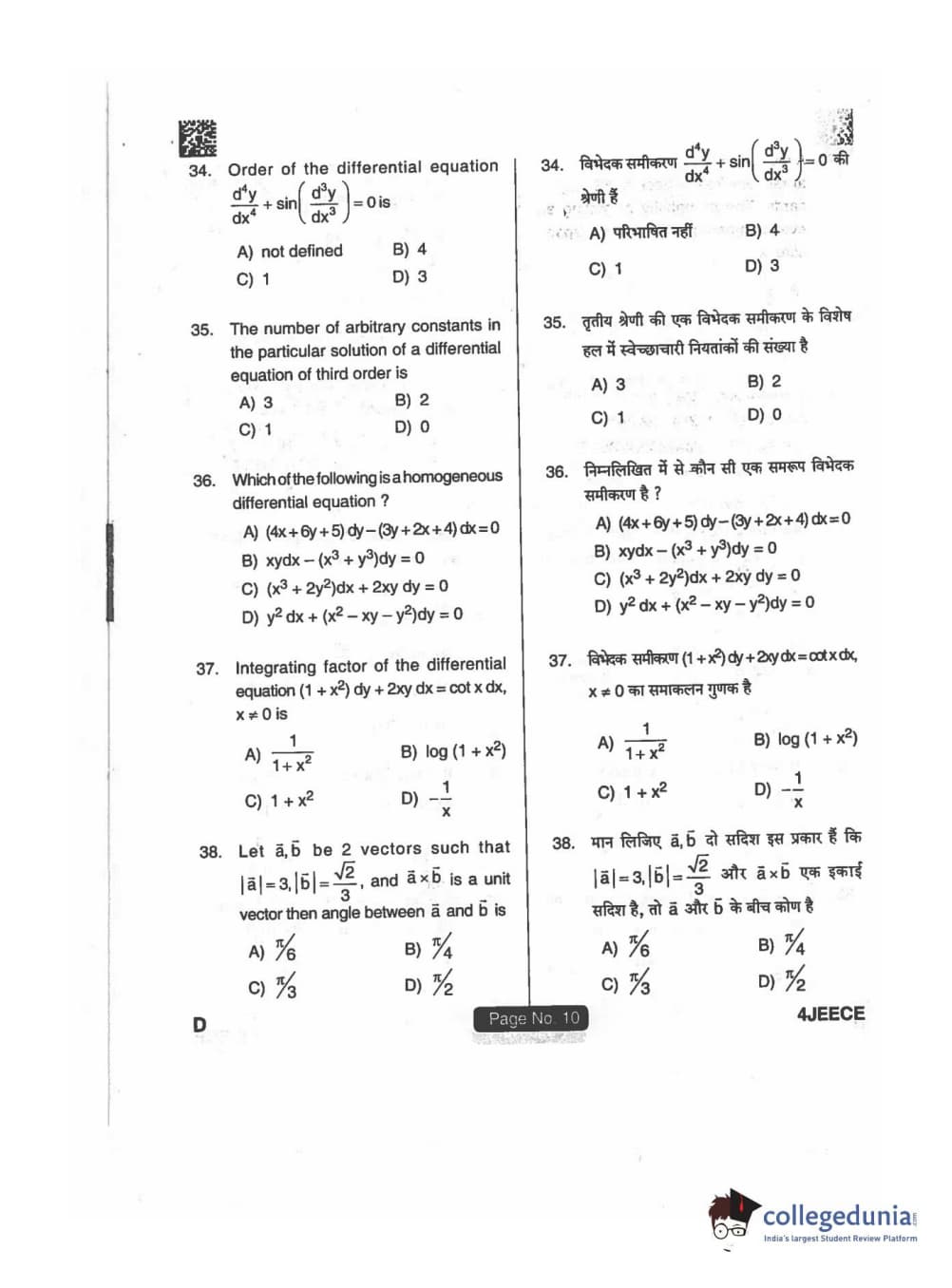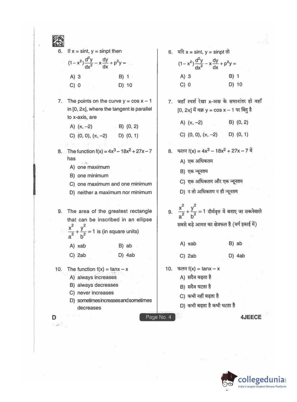 JEECE 2018 Mathematics Code D Question Paper with Answer Key PDFs