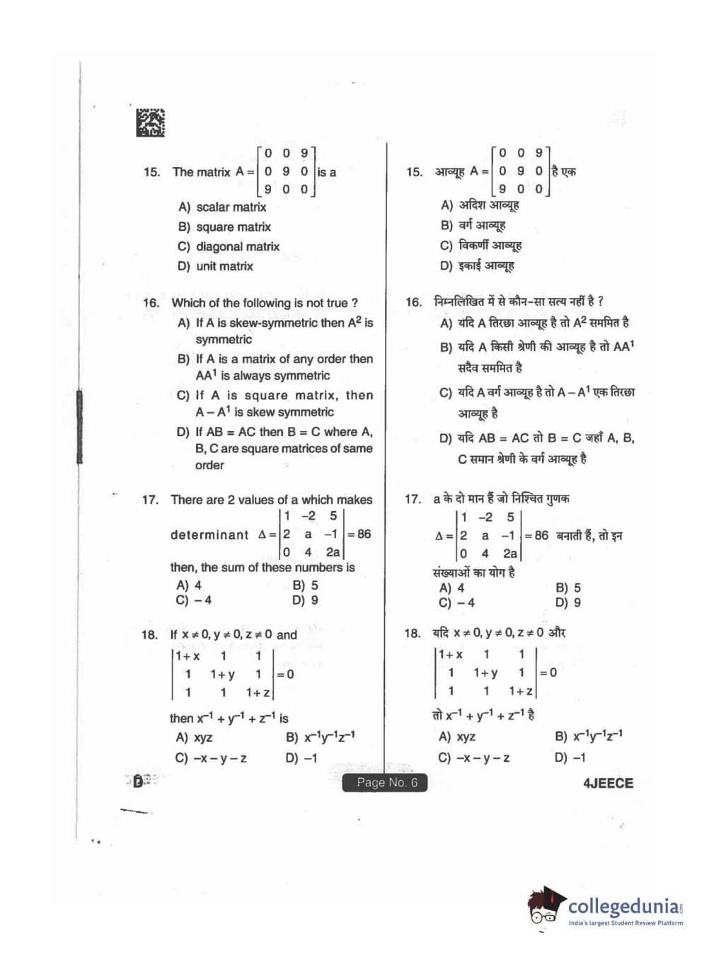 | JEECE 2018 Mathematics Question Paper PDF | JEECE 2018 Mathematics Answer Key PDF |