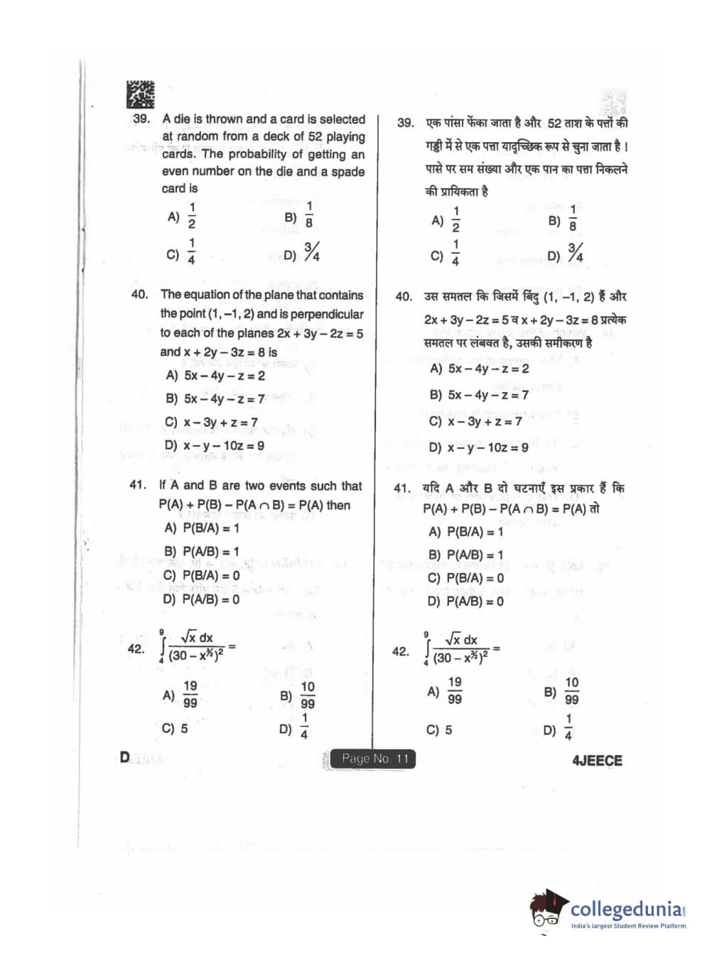 JEECE 2018 Mathematics Code D Question paper with answer key pdf conducted on May 26, 2018 is available for download. The exam was successfully organized by Jharkhand Combined Entrance Competitive Examination Board (JCECEB). The question paper comprised a total of 50 questions.