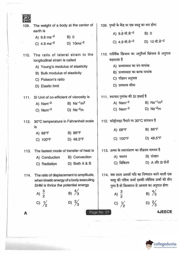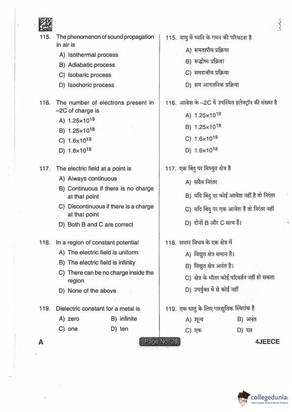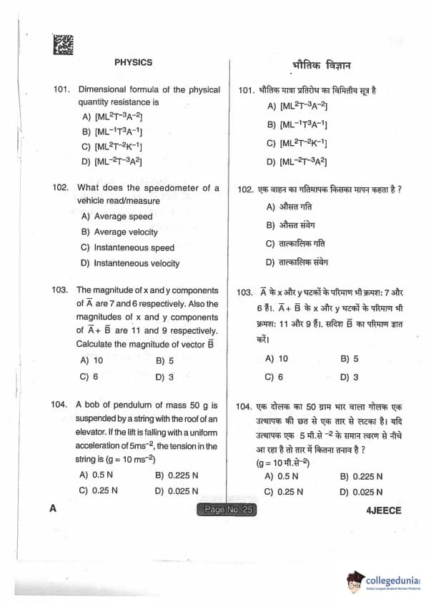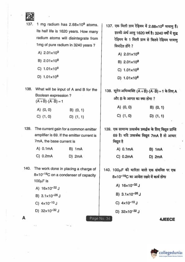JEECE 2018 Physics Code A Question Paper with Answer Key PDFs