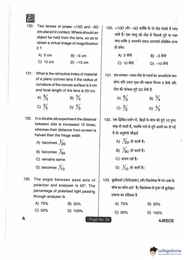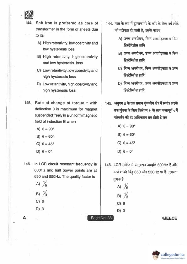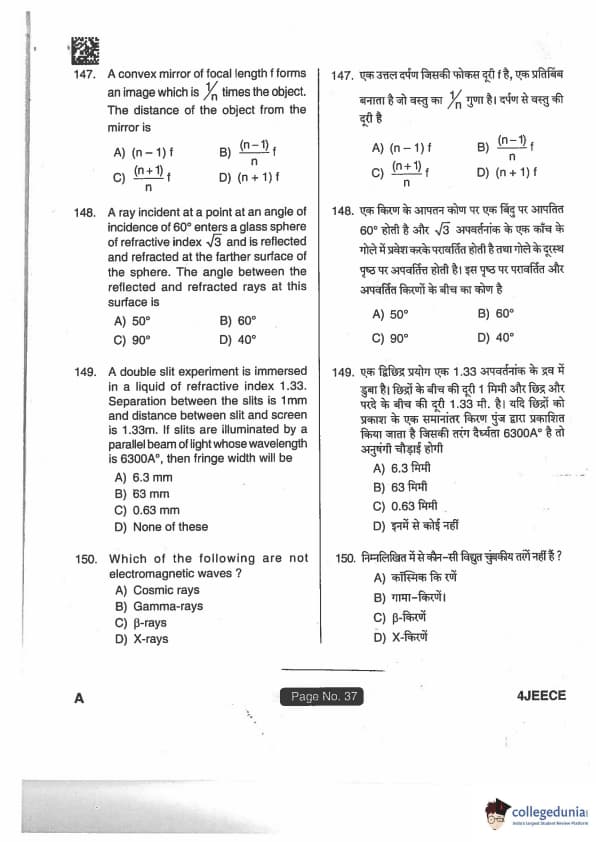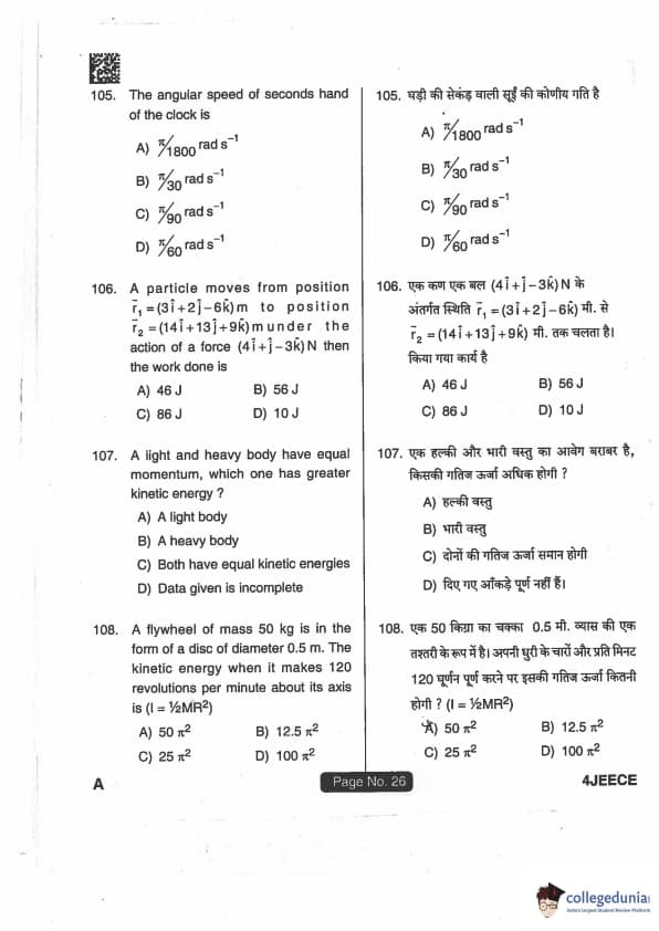 JEECE 2018 Physics Code A Question paper with answer key pdf conducted on May 26, 2018 is available for download. The exam was successfully organized by Jharkhand Combined Entrance Competitive Examination Board (JCECEB). The question paper comprised a total of 50 questions.