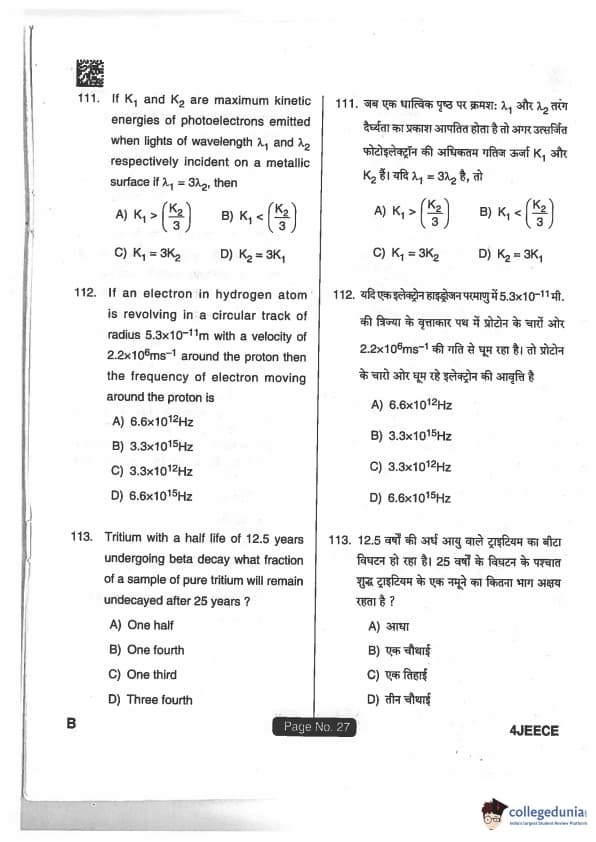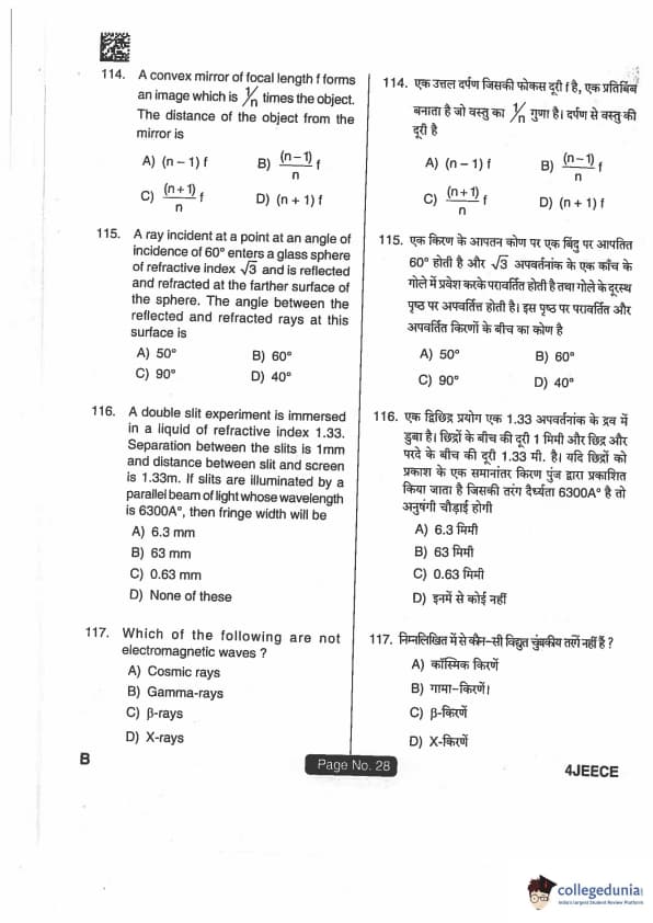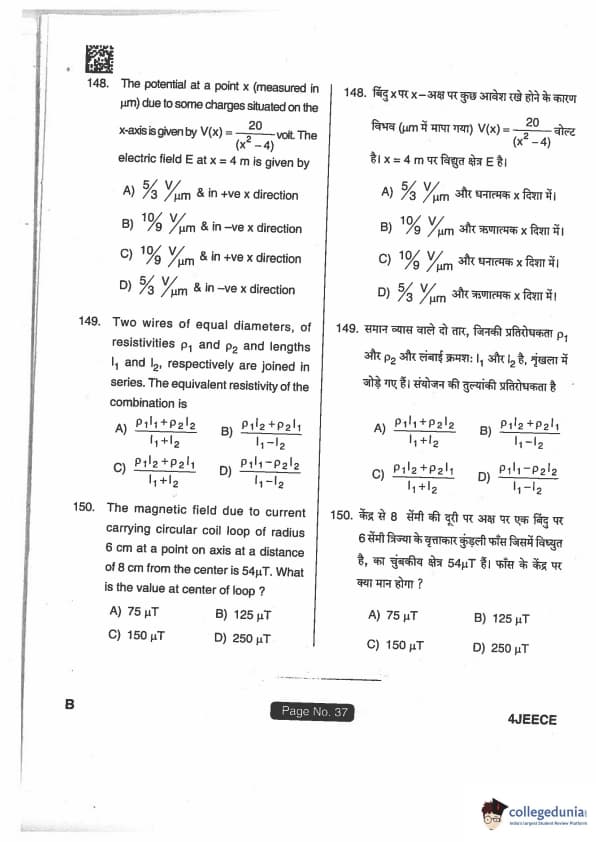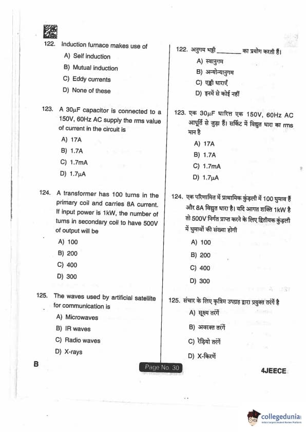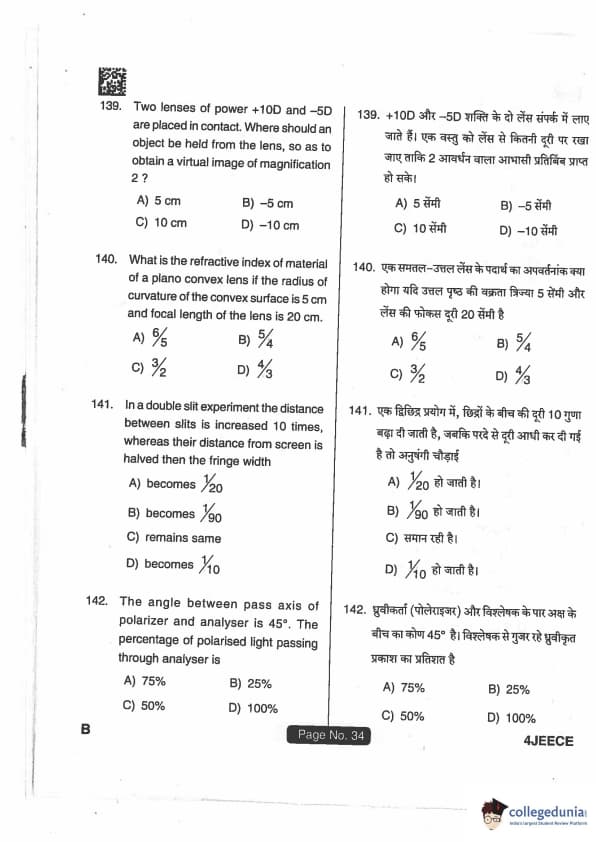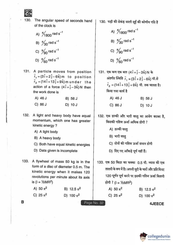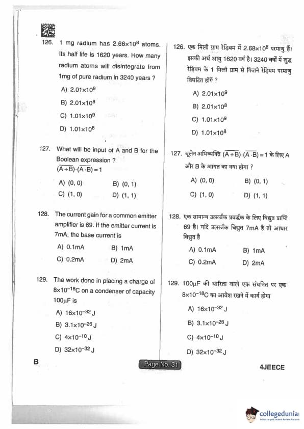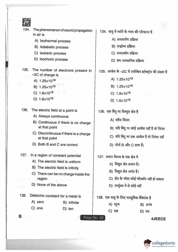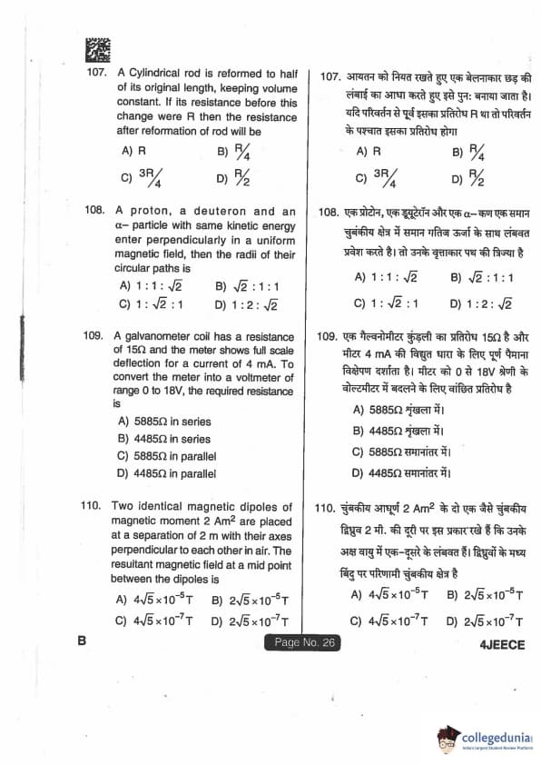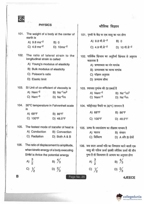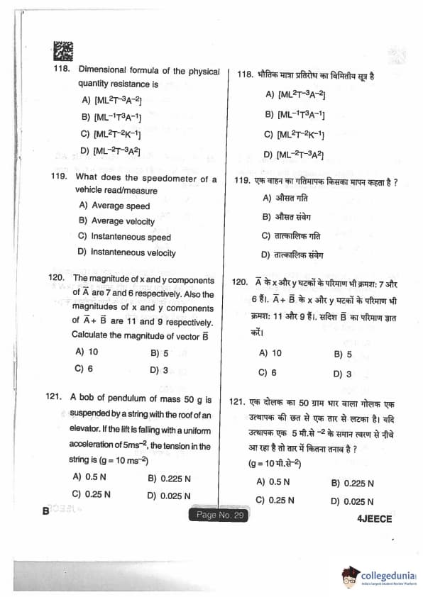 JEECE 2018 Physics Code B Question Paper with Answer Key PDFs