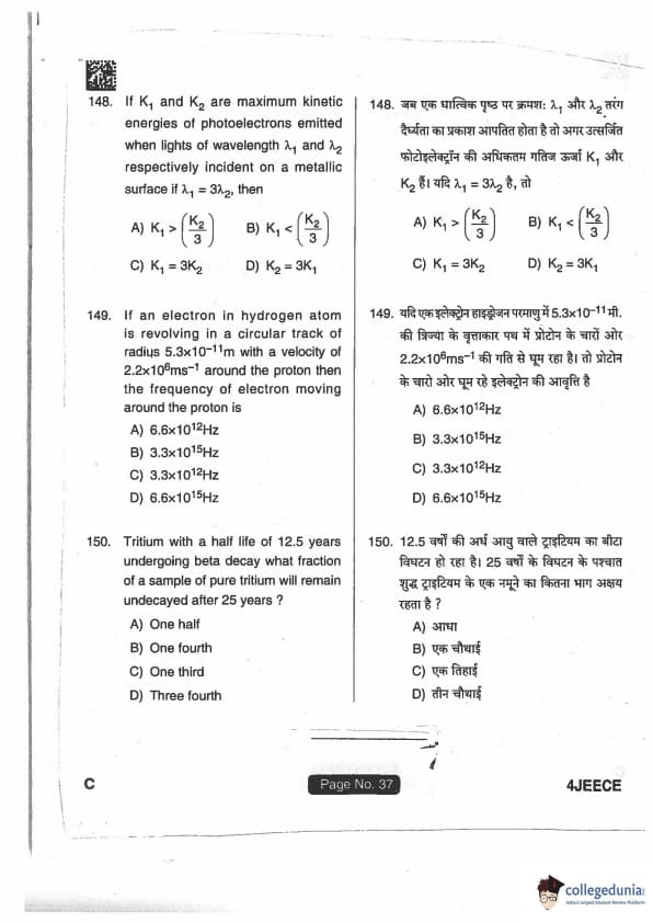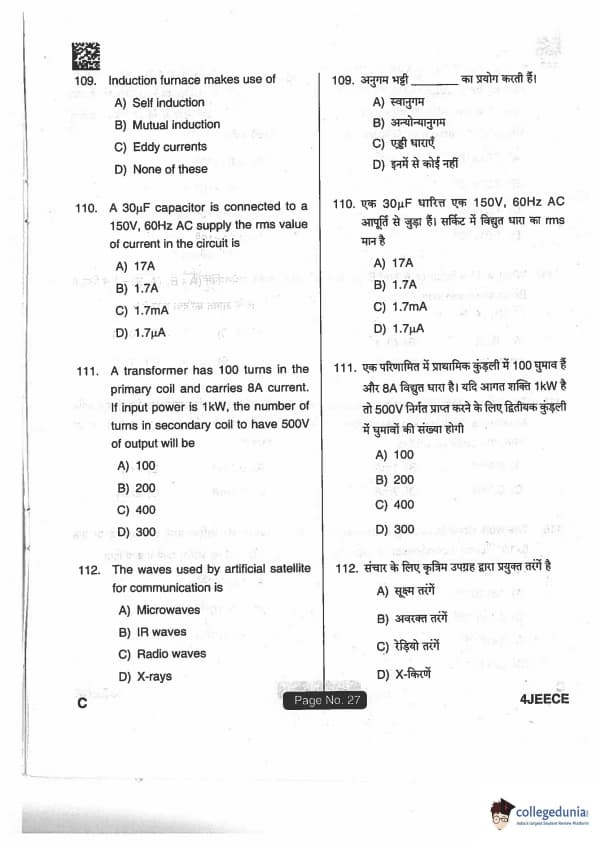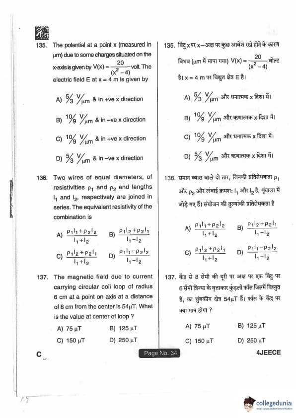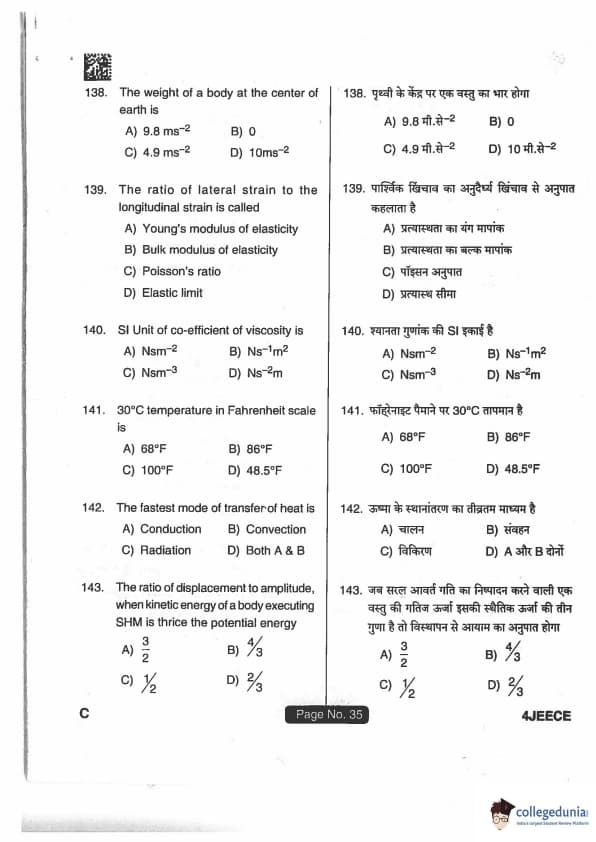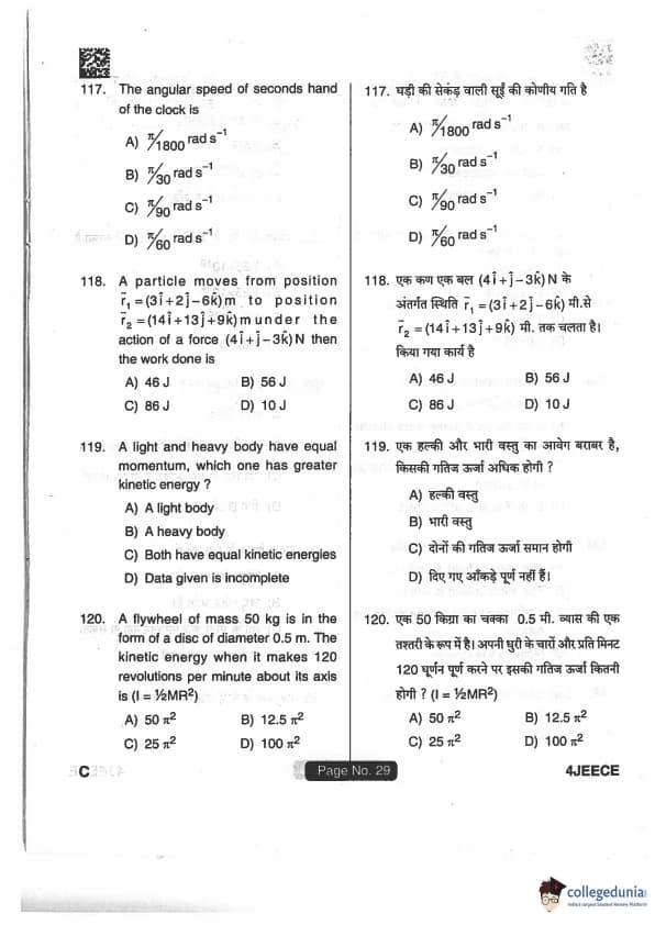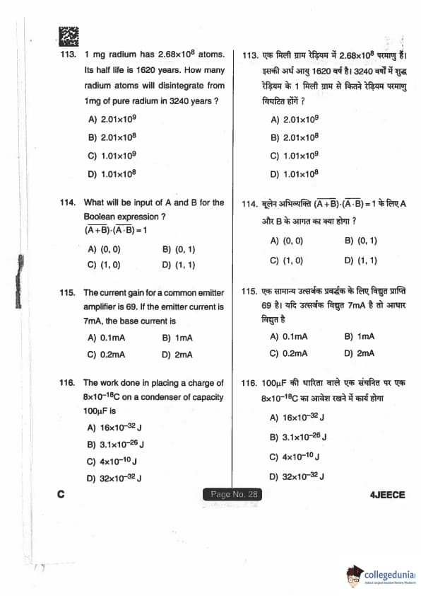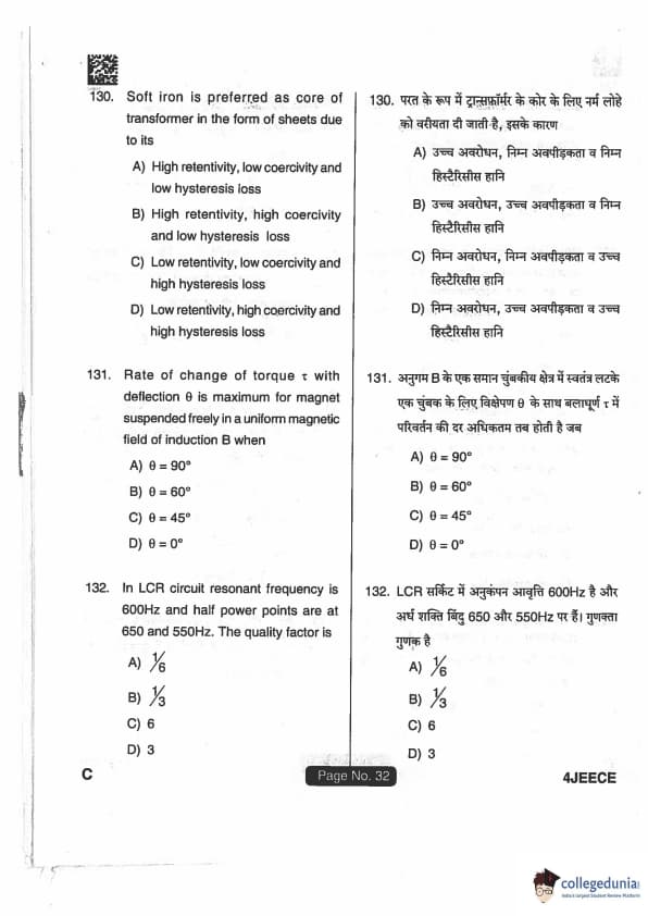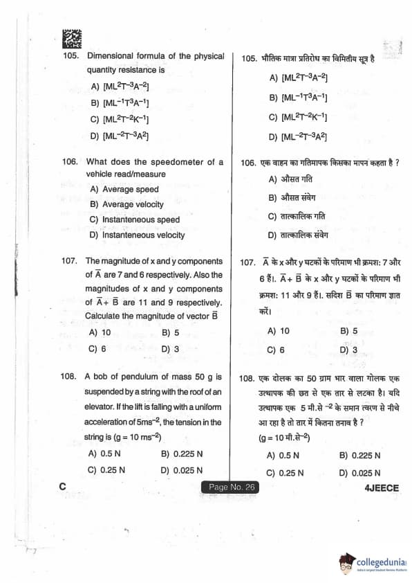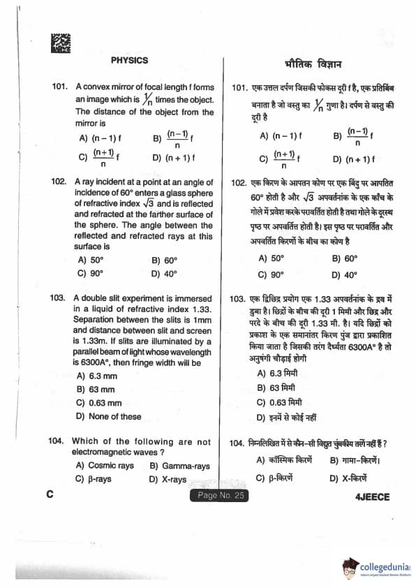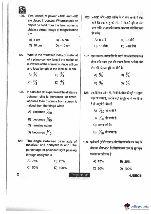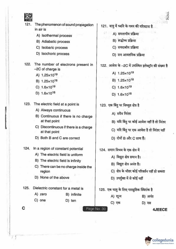 JEECE 2018 Physics Code C Question Paper with Answer Key PDFs