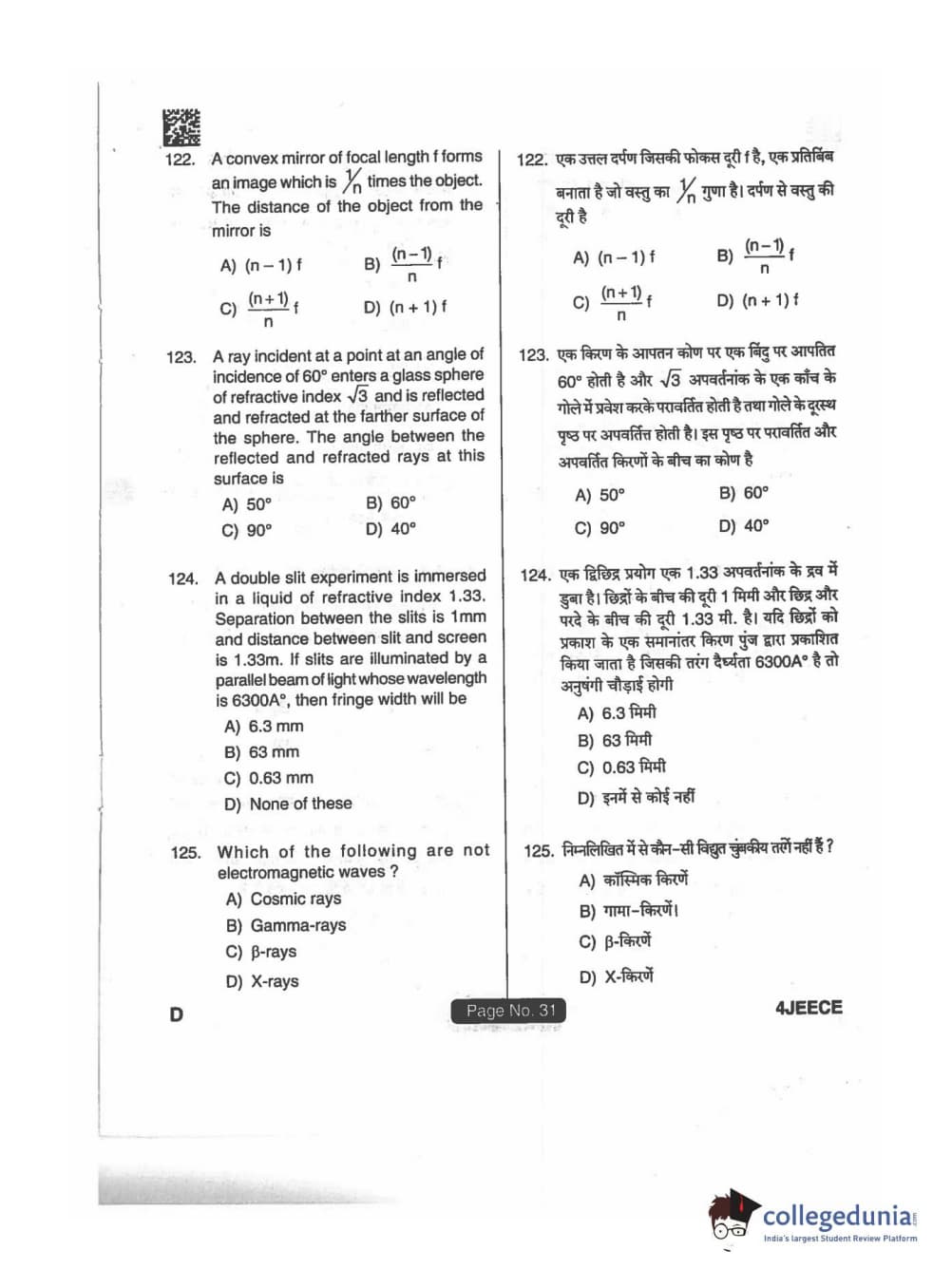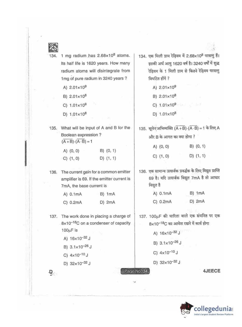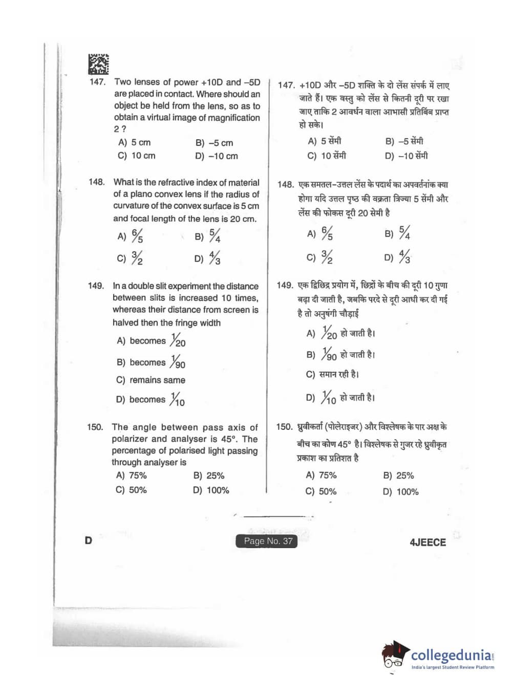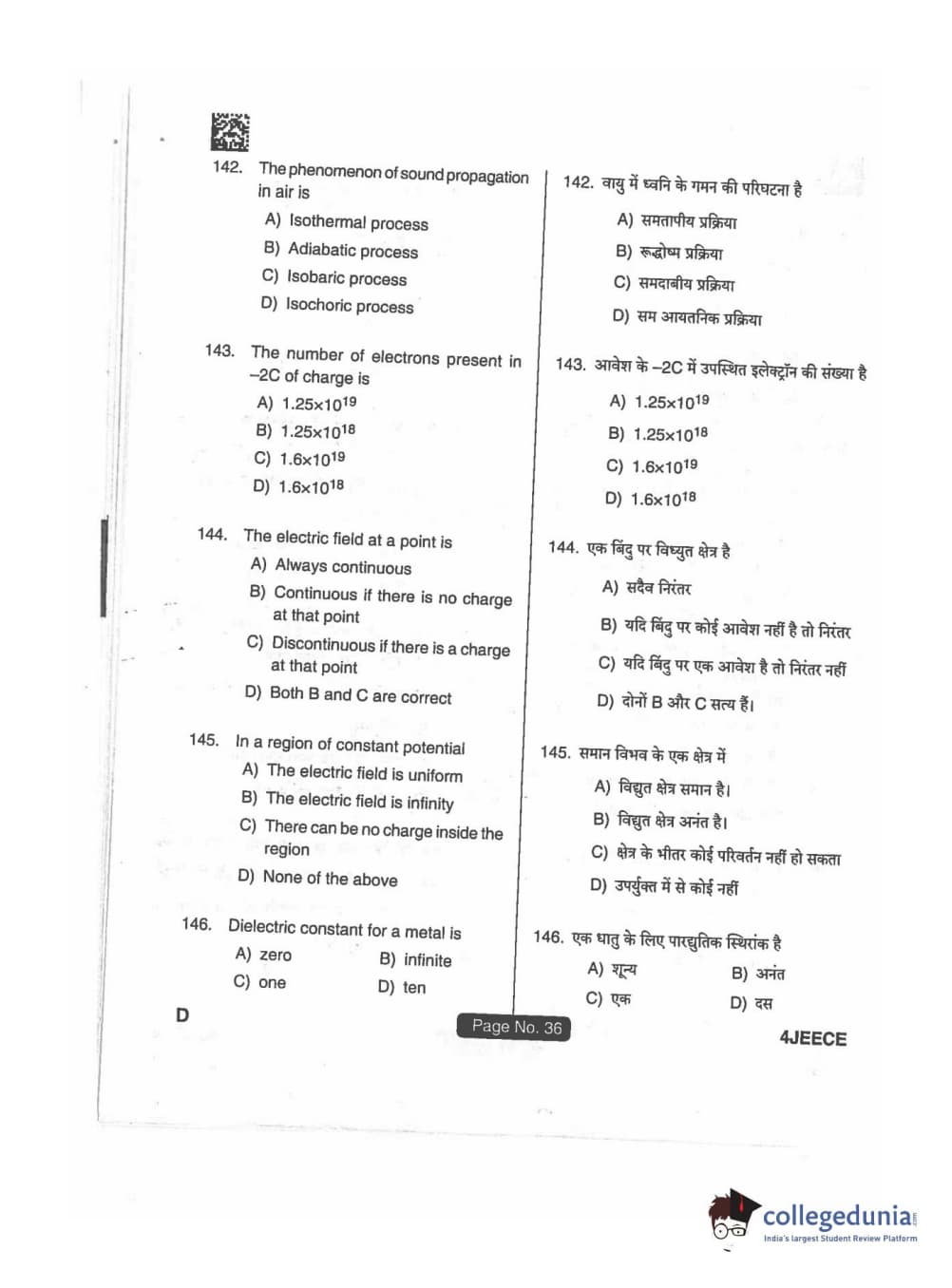 JEECE 2018 Physics Code D Question Paper with Answer Key PDFs
