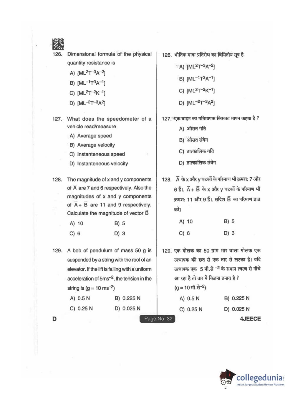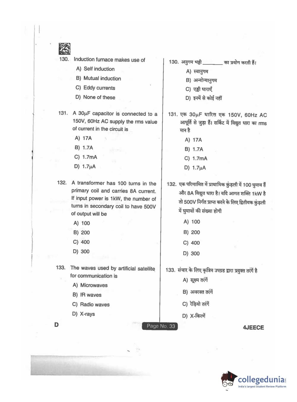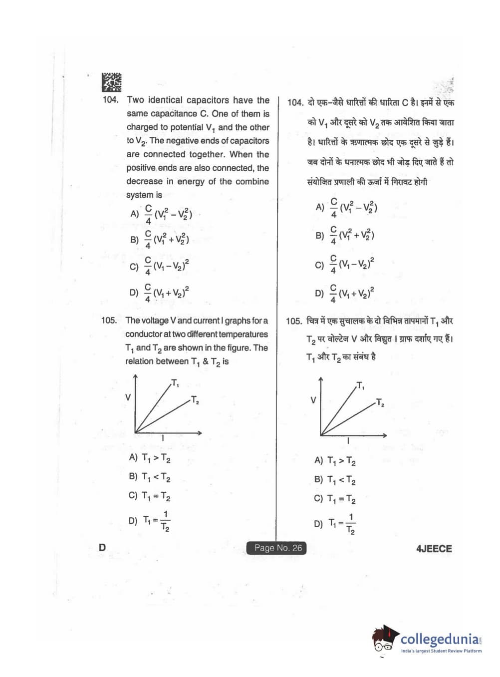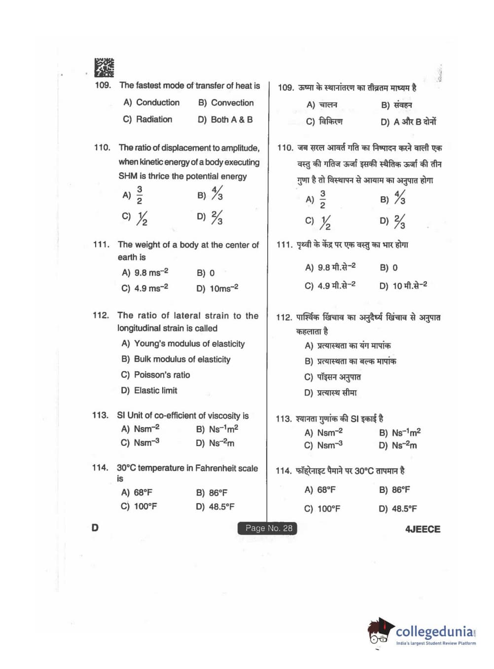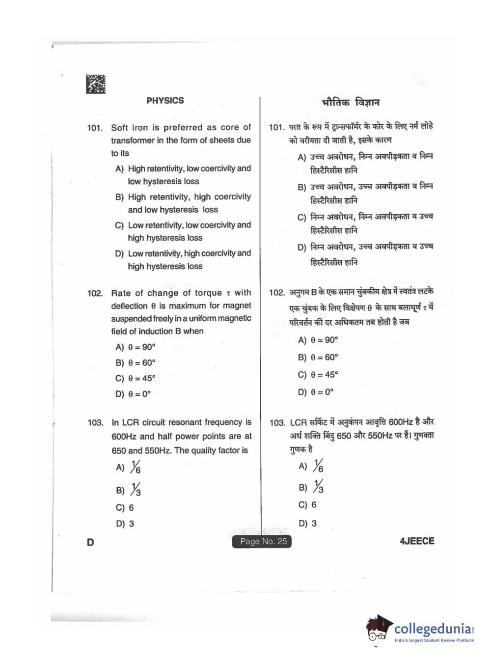 JEECE 2018 Physics Code D Question Paper with Answer Key PDFs