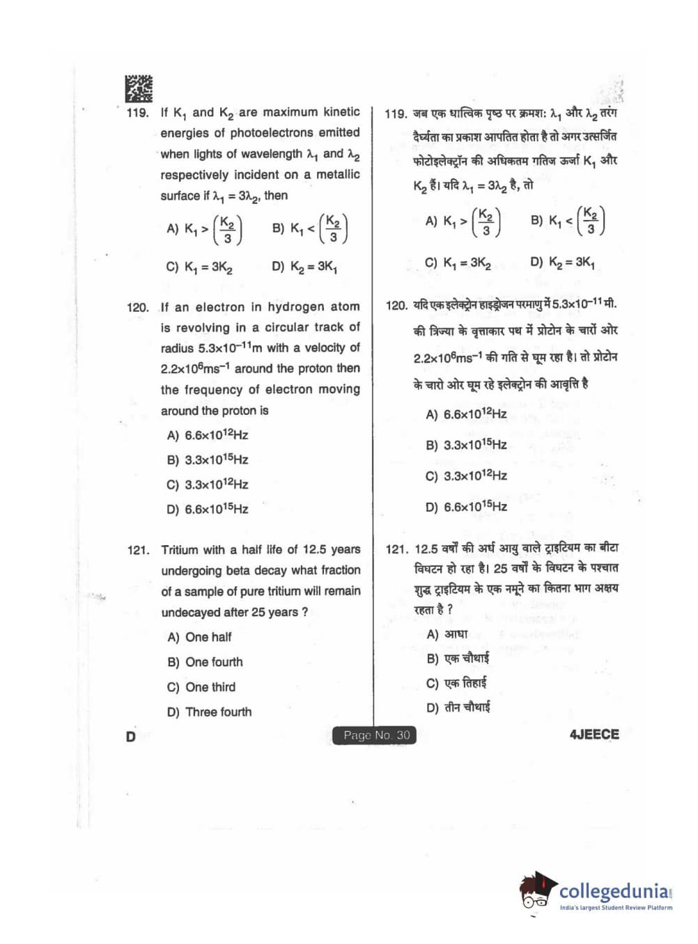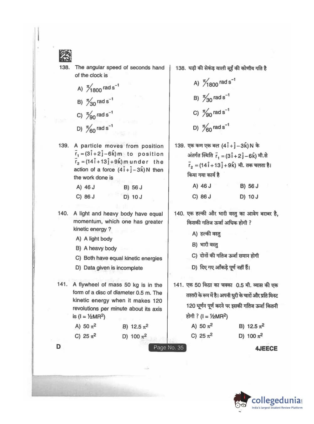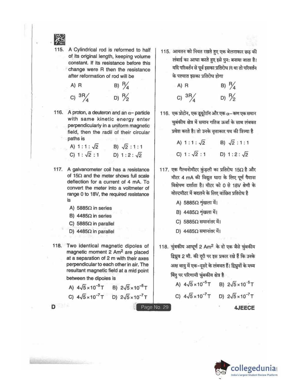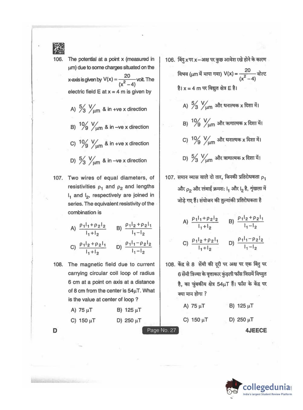 JEECE 2018 Physics Code D Question Paper with Answer Key PDFs