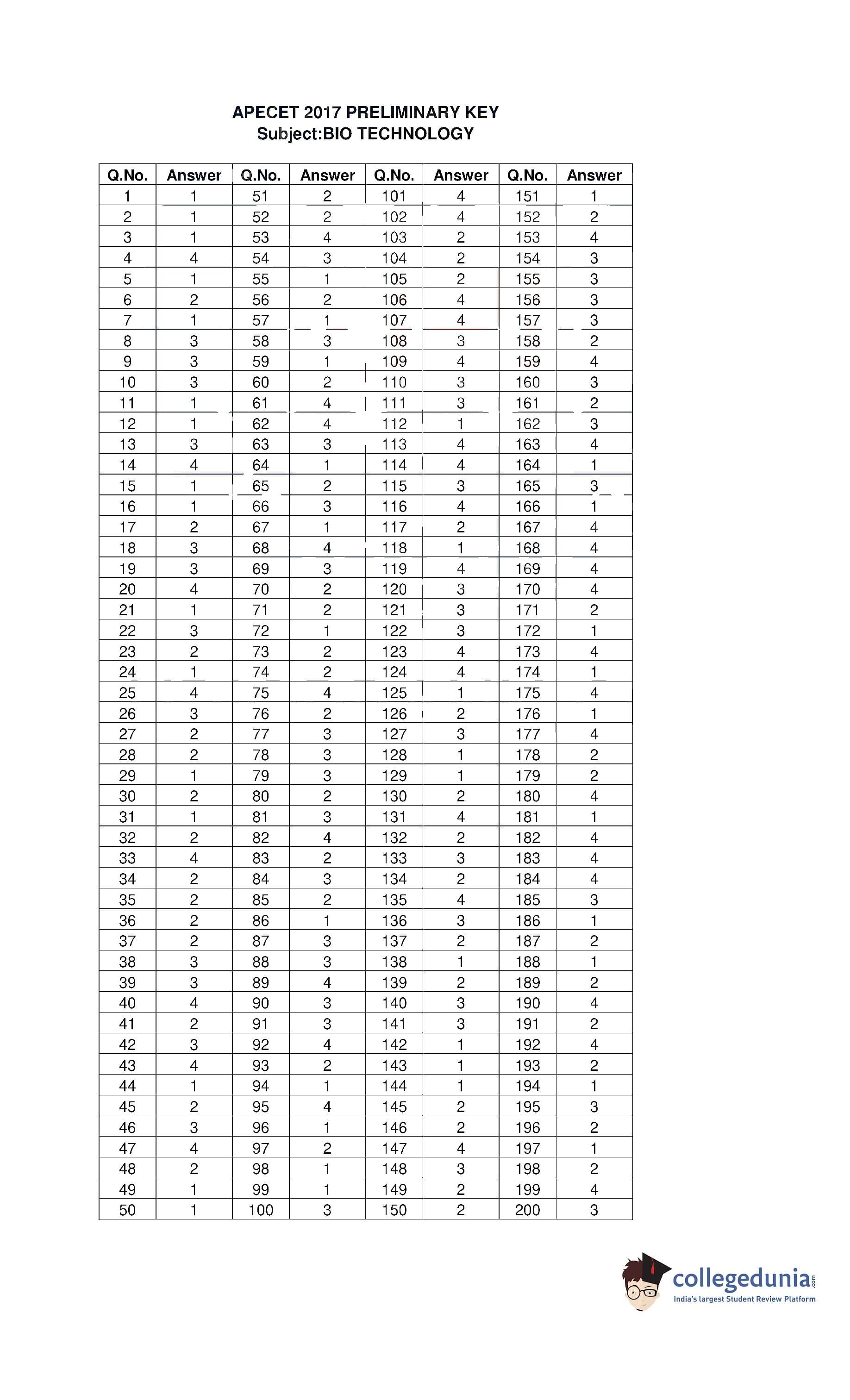 | AP ECET 2017 Bio Technology Question Paper PDF | AP ECET 2017 Bio Technology Answer Key PDF |