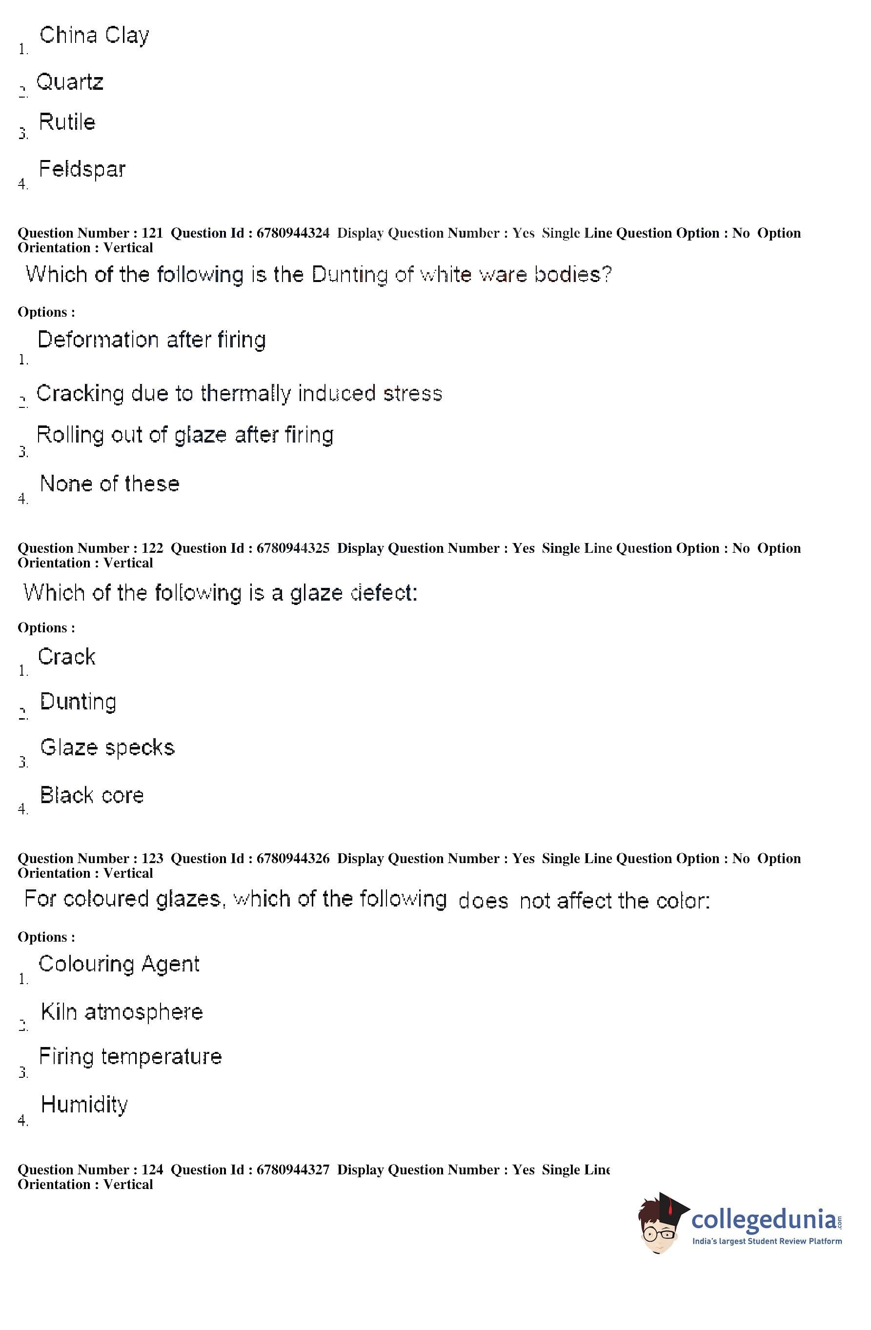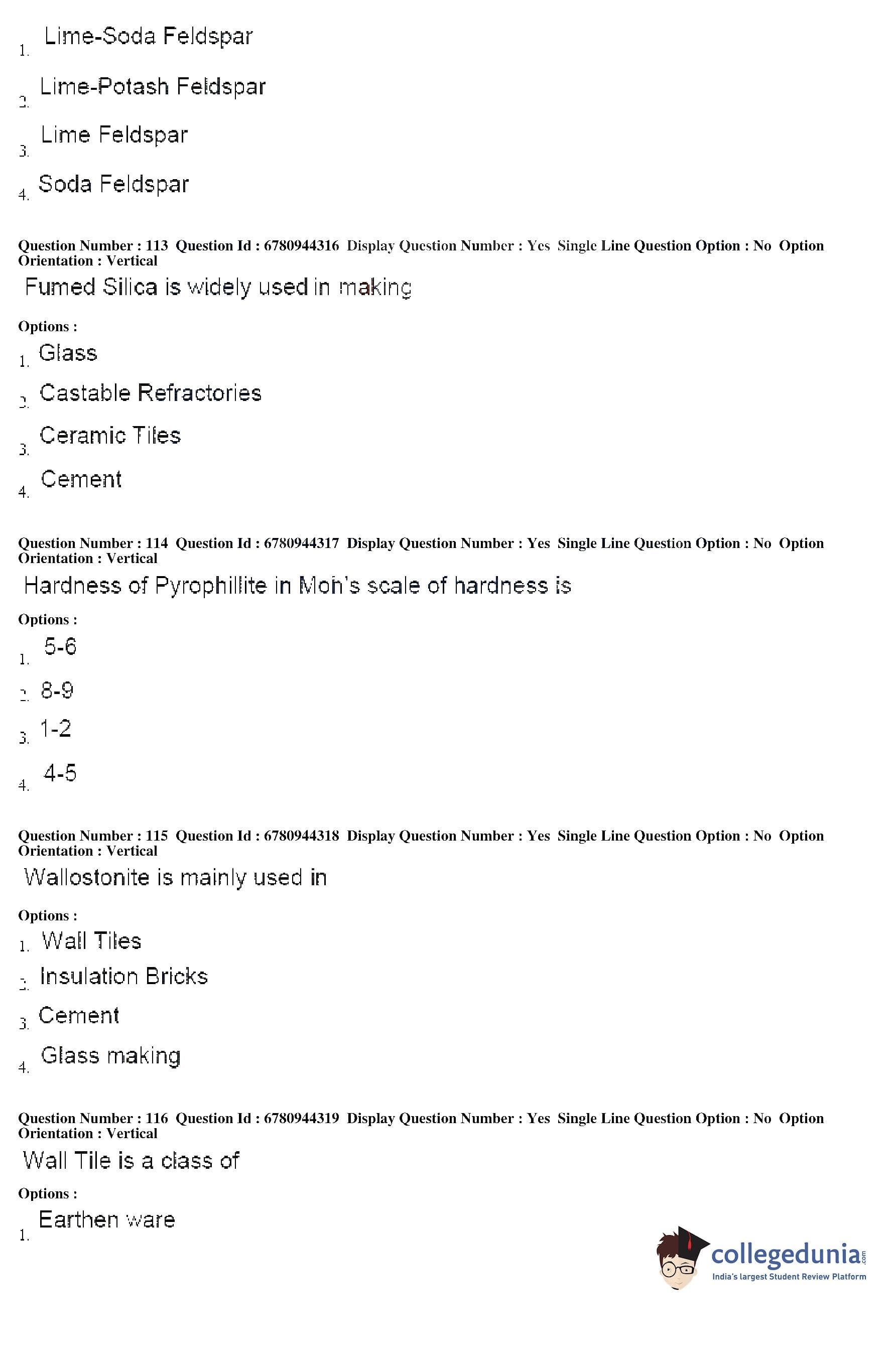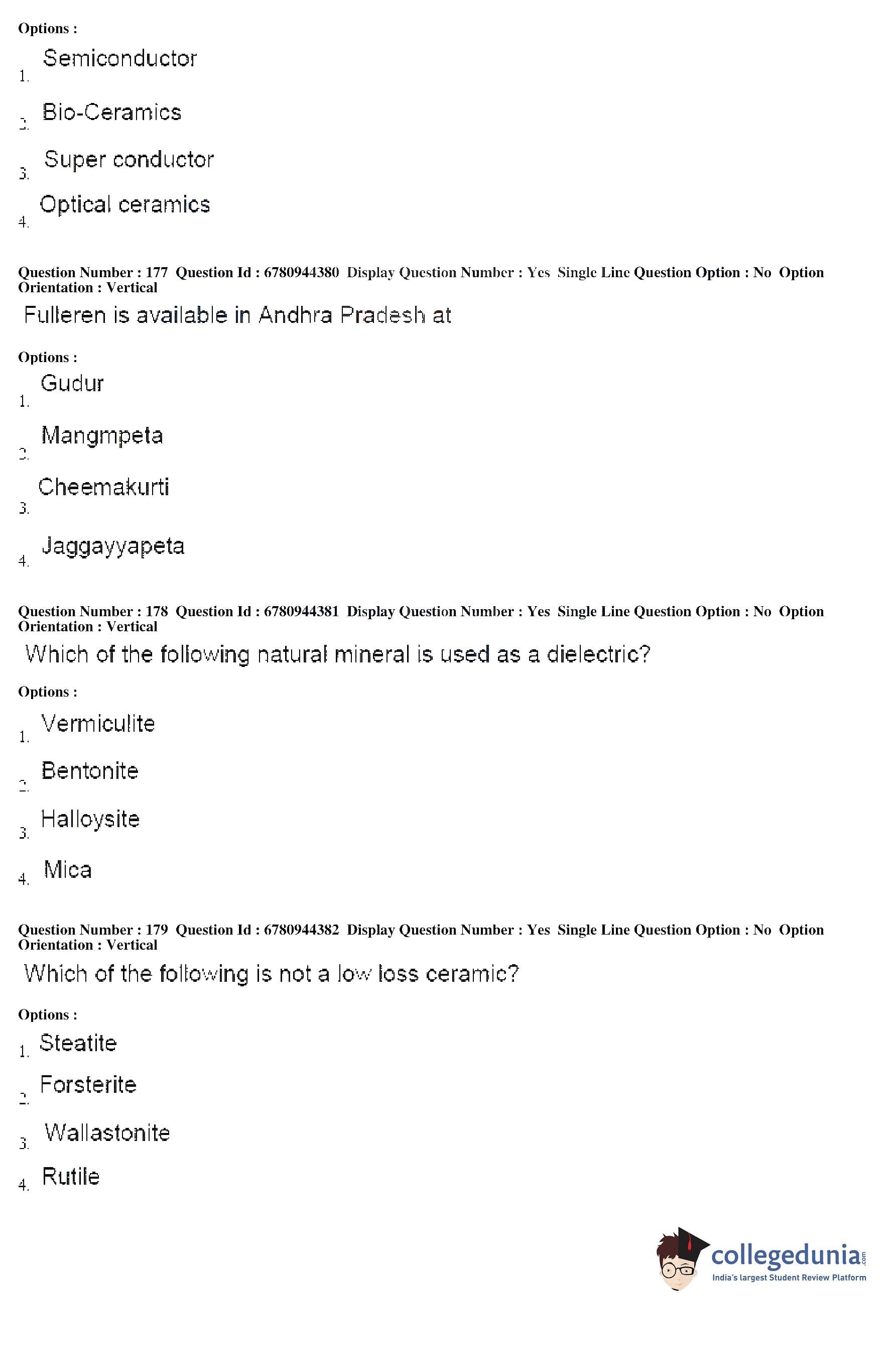 AP ECET 2017 Ceramic Technology Question Paper with Answer Key PDF