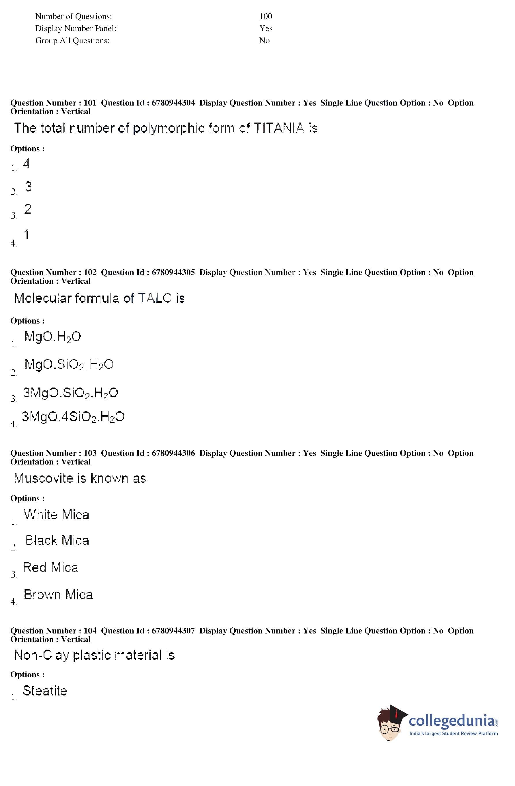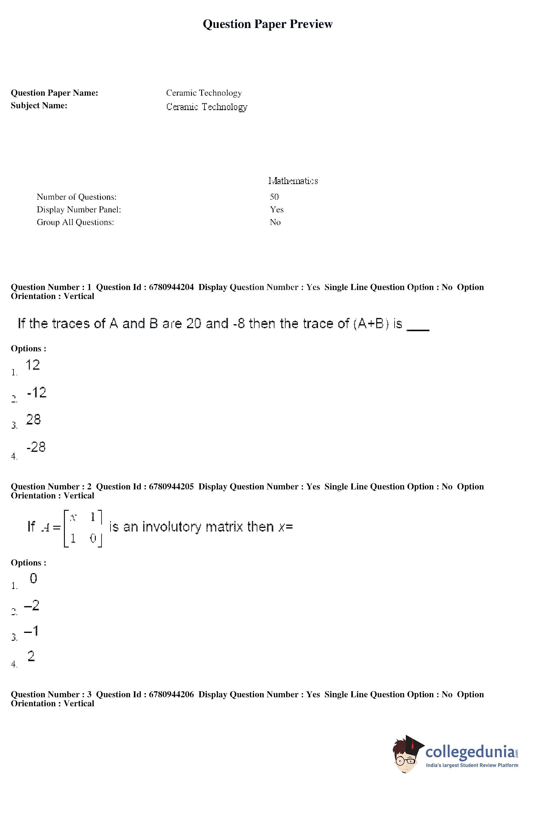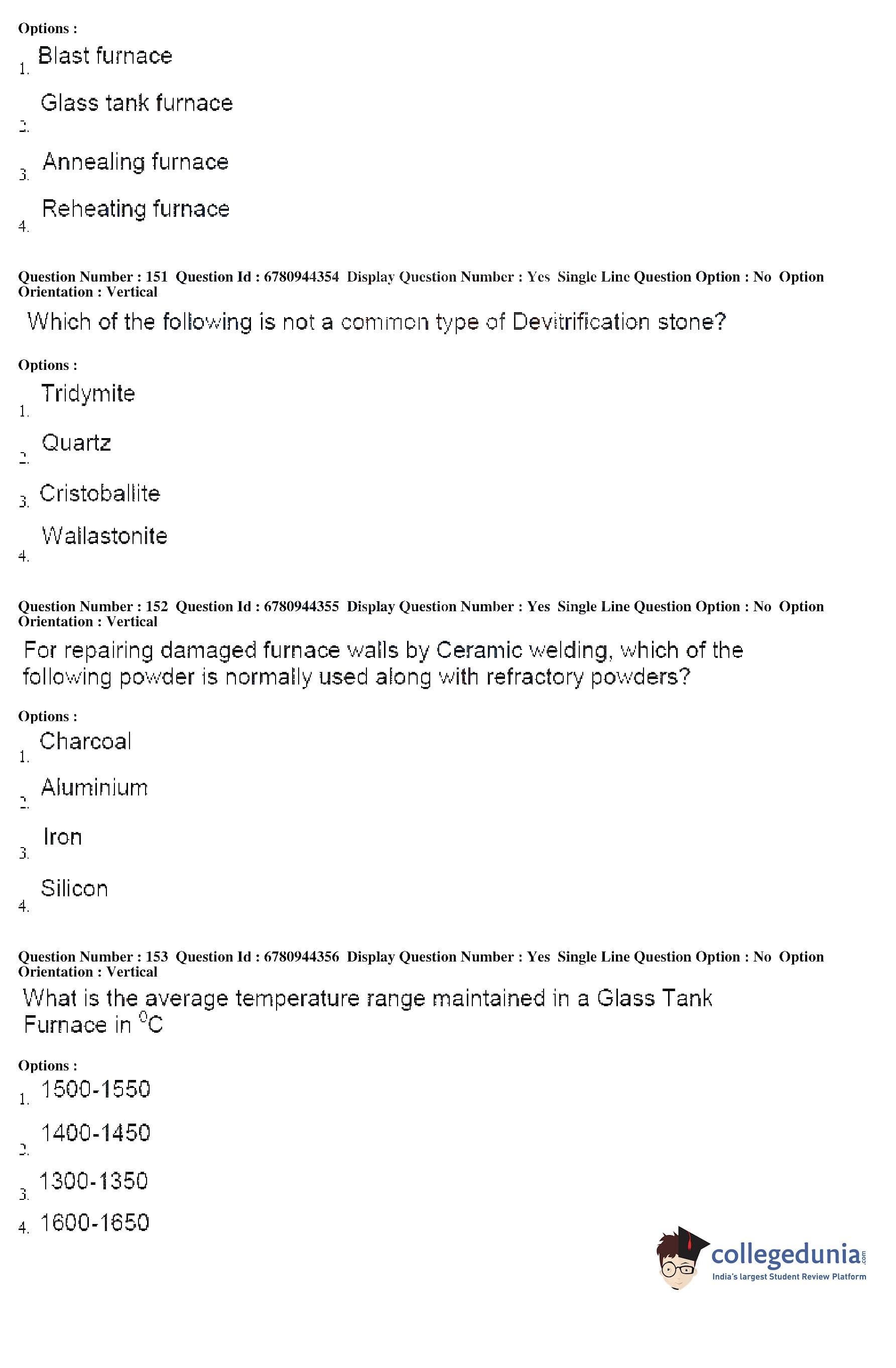 AP ECET 2017 Ceramic Technology Question Paper with Answer Key PDF