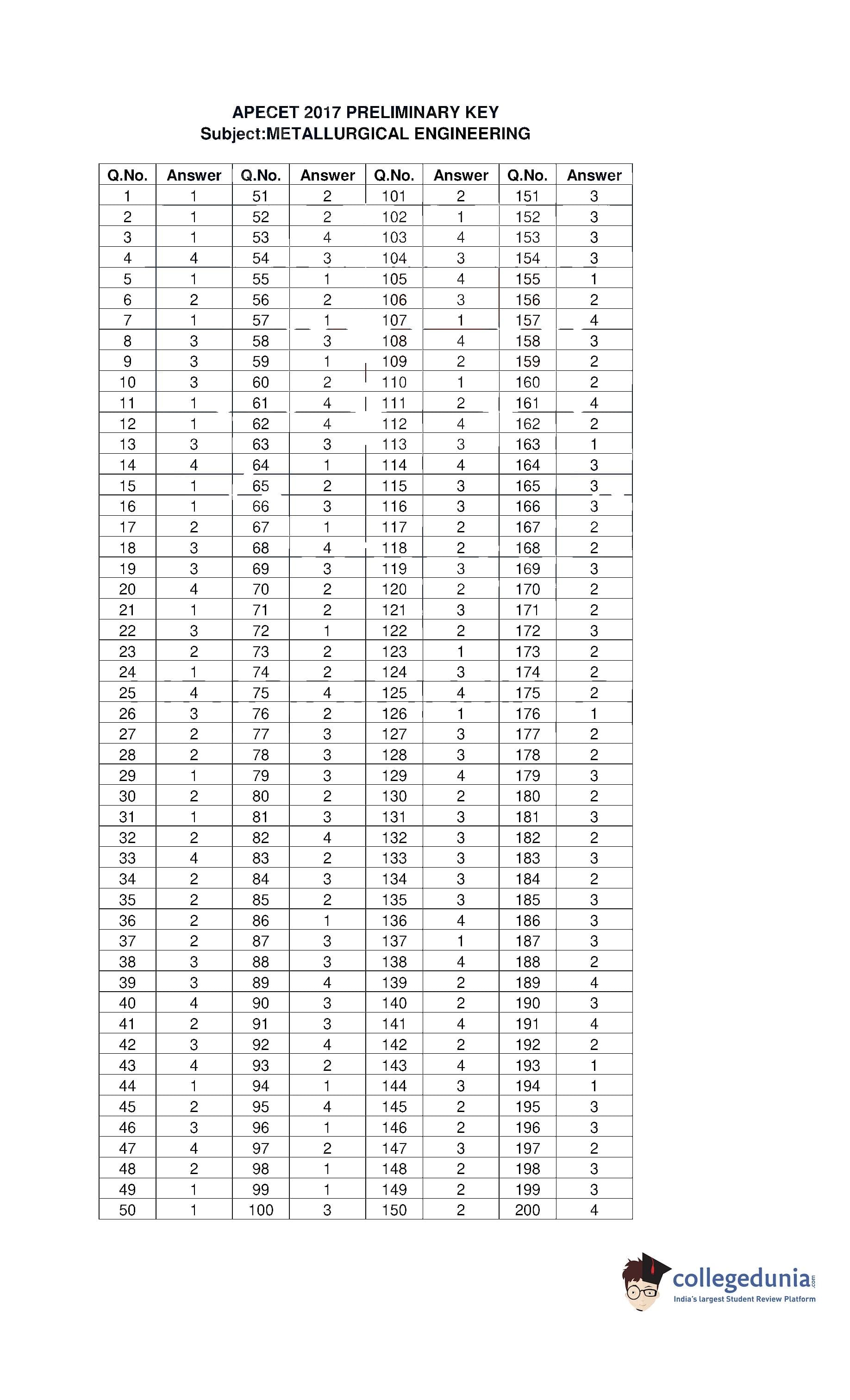 | AP ECET 2017 Metallurgical Engineering Question Paper PDF | AP ECET 2017 Metallurgical Engineering Answer Key PDF |
