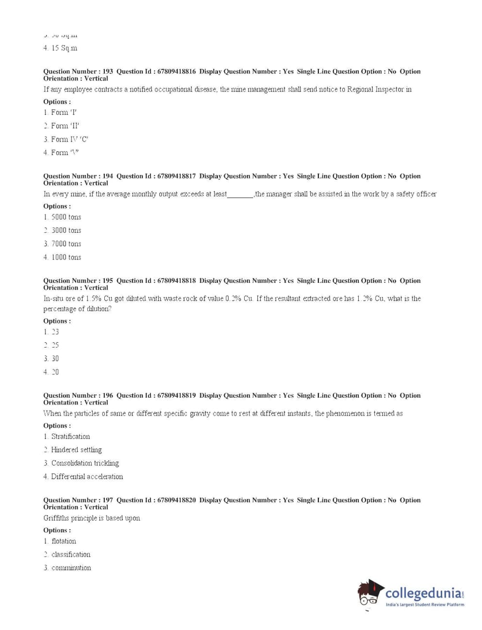 AP ECET 2018 Mining Engineering Question paper with answer key pdf conducted on May 3, 2018 is available for download. The exam was successfully organized by Jawaharlal Nehru Technology (JNT) University, Anantapur. The question paper comprised a total of 200.0 questions.