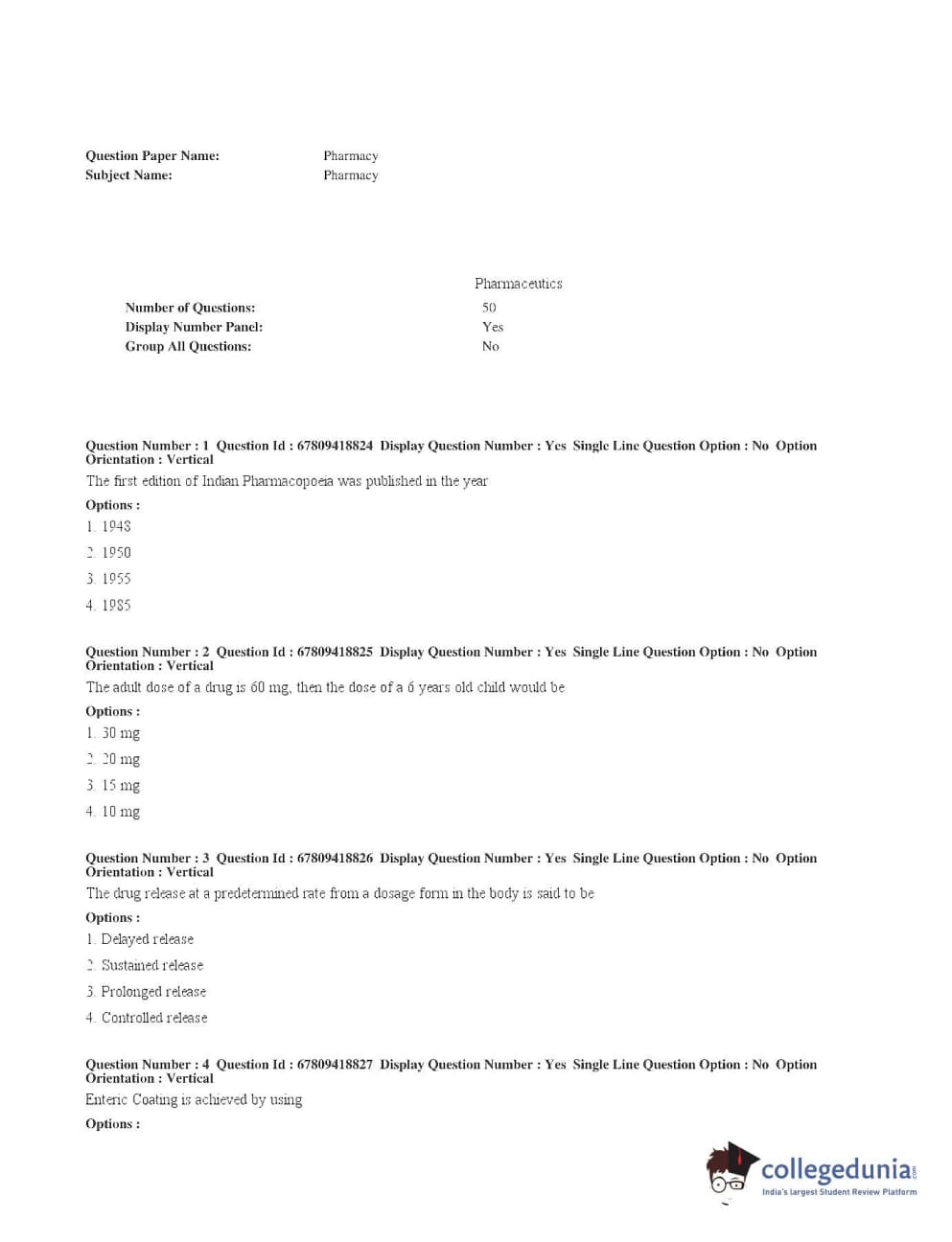 AP ECET 2018 Pharmacy Question Paper with Answer Key PDFs in English