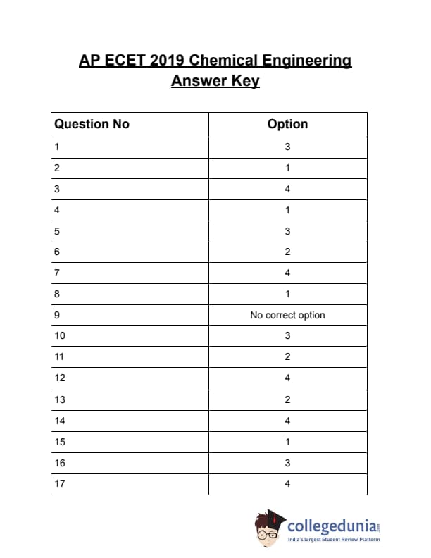| AP ECET 2019 Chemical Engineering Question Paper PDF | AP ECET 2019 Chemical Engineering Answer Key PDF |
