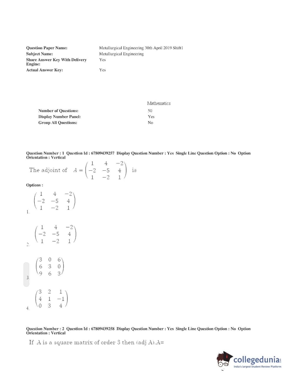 | AP ECET 2019 Metallurgical Engineering Question Paper PDF | AP ECET 2019 Metallurgical Engineering Answer Key PDF |
