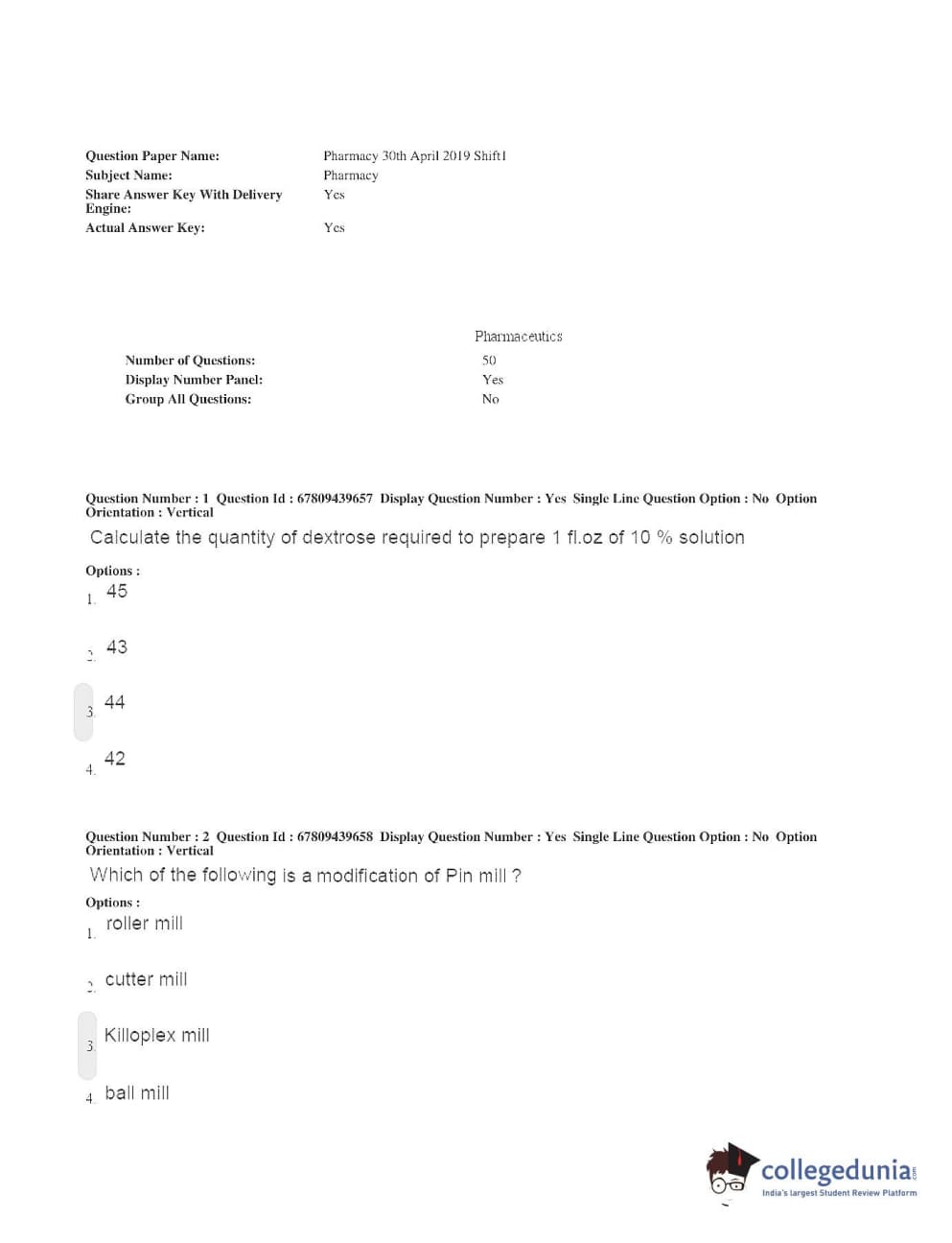 AP ECET 2019 Pharmacy Question Paper with Answer Key PDFs in English ,Shift 1