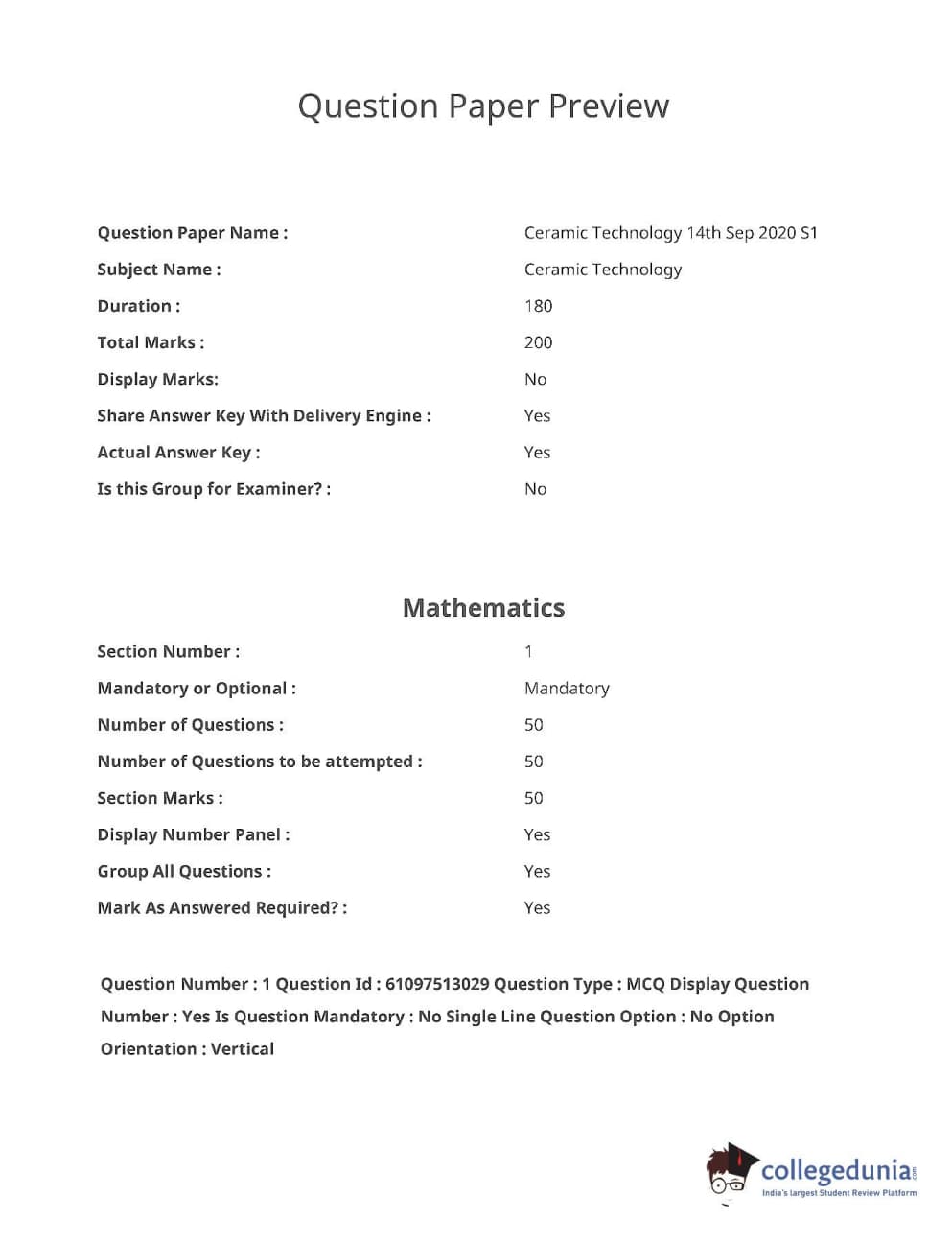 AP ECET 2020 Ceramic Technology Question paper with answer key pdf conducted on September 14, 2020 in Shift 1 is available for download. The exam was successfully organized by Jawaharlal Nehru Technology (JNT) University, Anantapur. The question paper comprised a total of 200.0 questions.