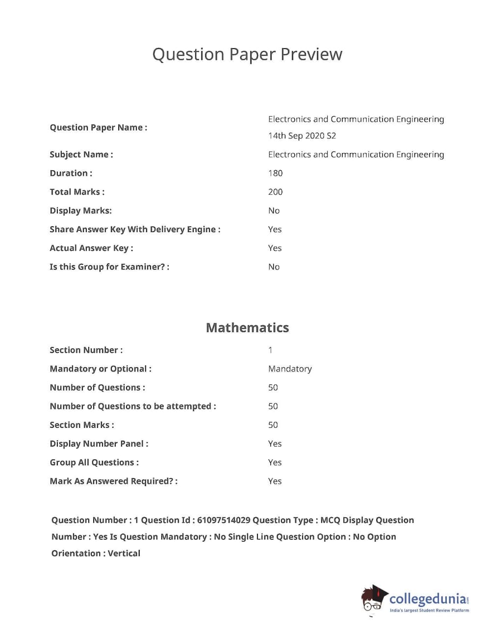 AP ECET 2020 Electronics and Communication Engineering Question paper with answer key pdf conducted on September 14, 2020 in Shift 2 is available for download. The exam was successfully organized by Jawaharlal Nehru Technology (JNT) University, Anantapur. The question paper comprised a total of 200.0 questions.