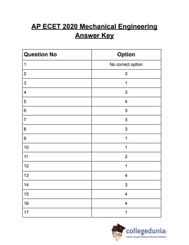 | AP ECET 2020 Mechanical Engineering Question Paper PDF | AP ECET 2020 Mechanical Engineering Answer Key PDF |