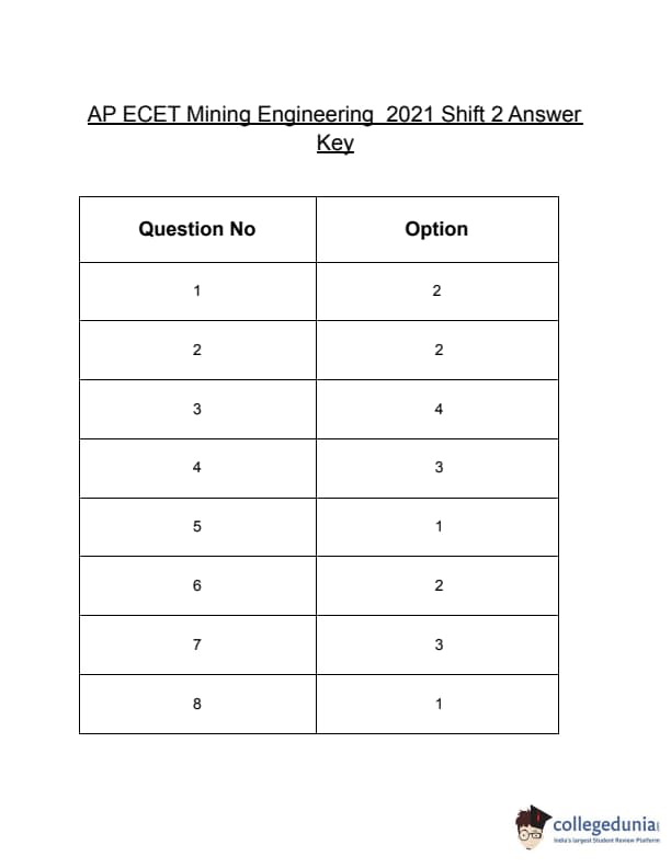 | AP ECET 2021 Mining Engineering Question Paper PDF | AP ECET 2021 Mining Engineering Answer Key PDF |