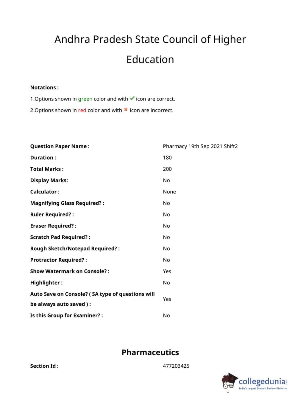 AP ECET 2021 Pharmacy Question Paper with Answer Key PDFs Shift 2