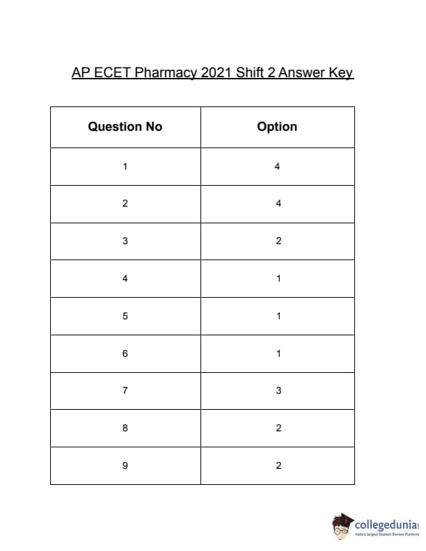 | AP ECET 2021 Pharmacy Question Paper PDF | AP ECET 2021 Pharmacy Answer Key PDF |