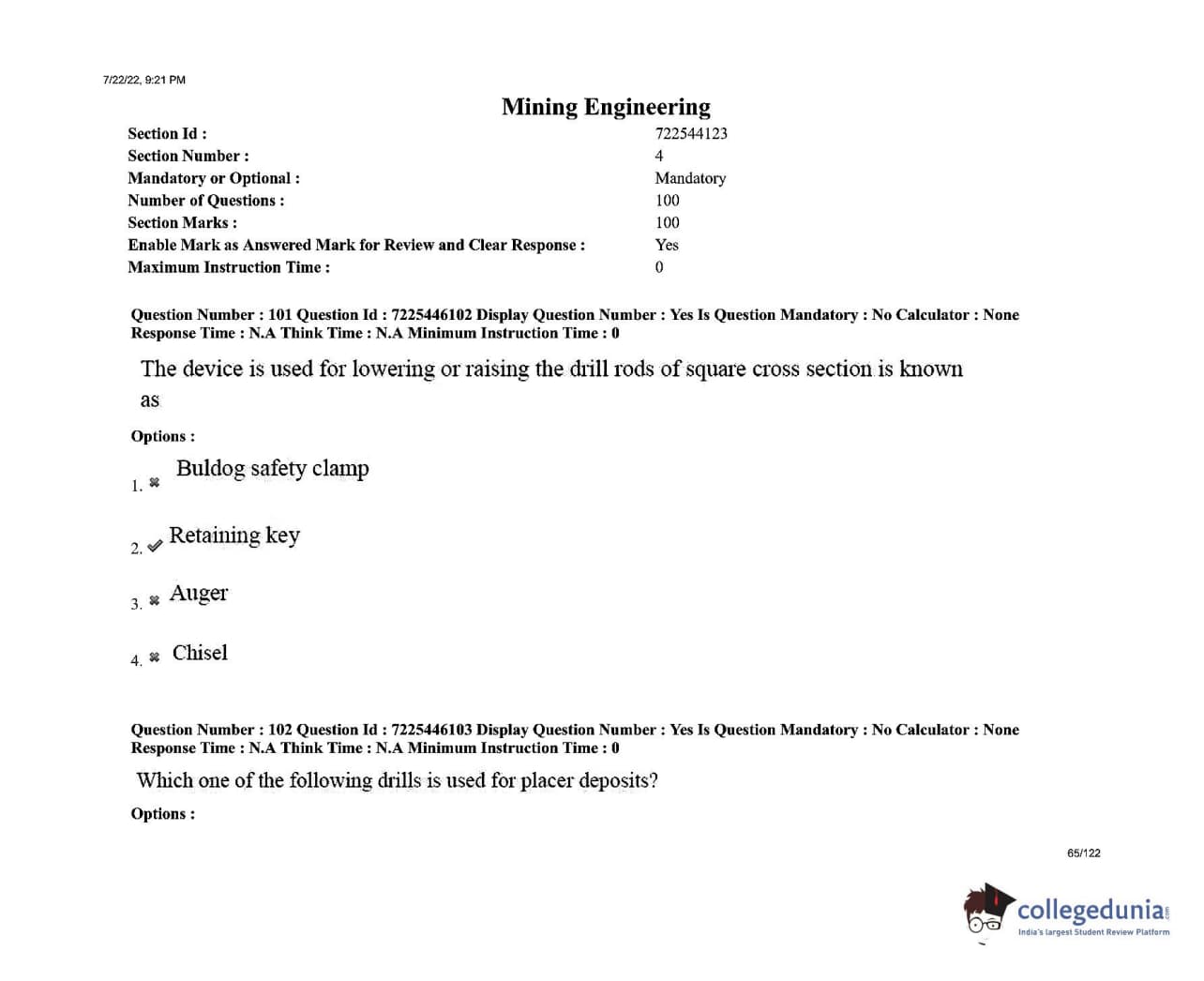 | AP ECET 2022 Mining Engineering Question Paper PDF | AP ECET 2022 Mining Engineering Answer Key PDF |