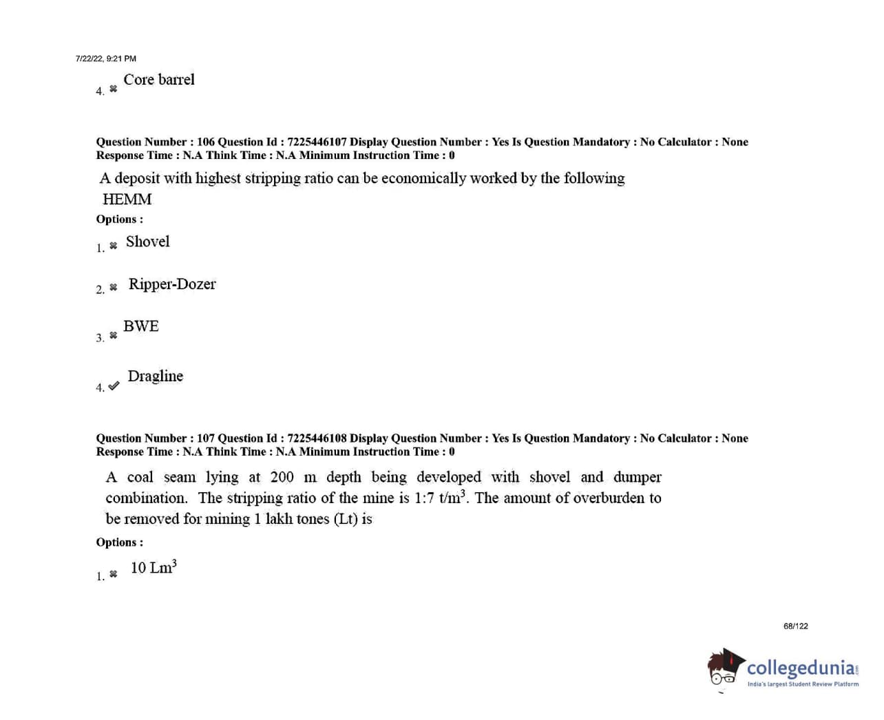 AP ECET 2022 Mining Engineering Question Paper with Answer Key PDFs Shift 2