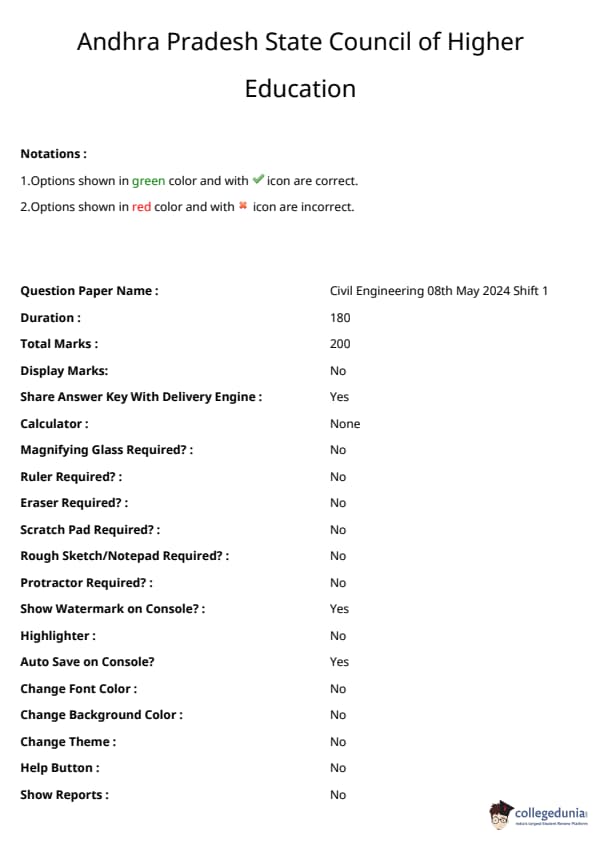 AP ECET 2024 Civil Engineering Question Paper is available for download here. JNTU Anantapur on behalf of APSCHE conducted AP ECET 2024 on May 8 Shift 1. AP ECET 2024 Civil Engineering Question Paper consists of 25 questions from Physics and Chemistry each, 50 questions from Mathematics and 100 questions from Civil Engineering to be attempted in the duration of 3 hours.