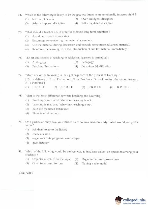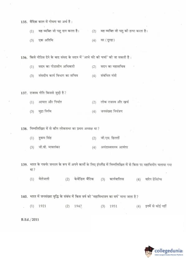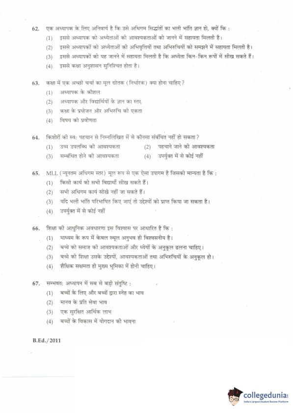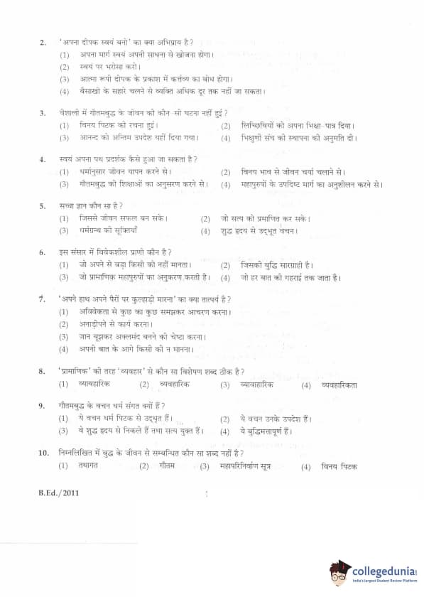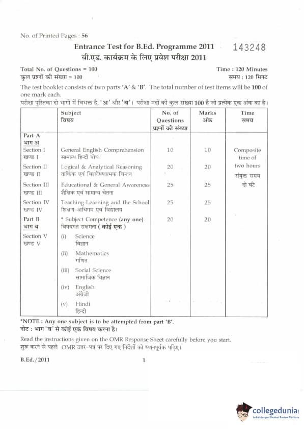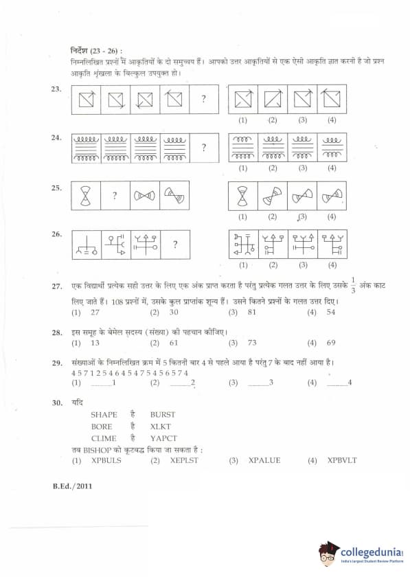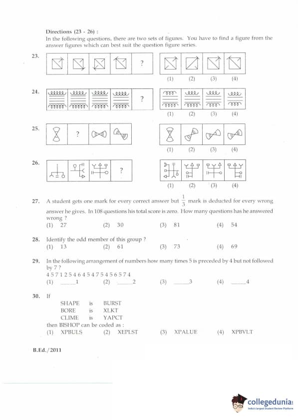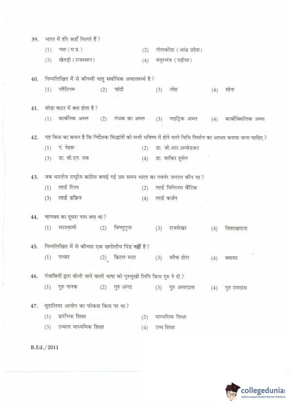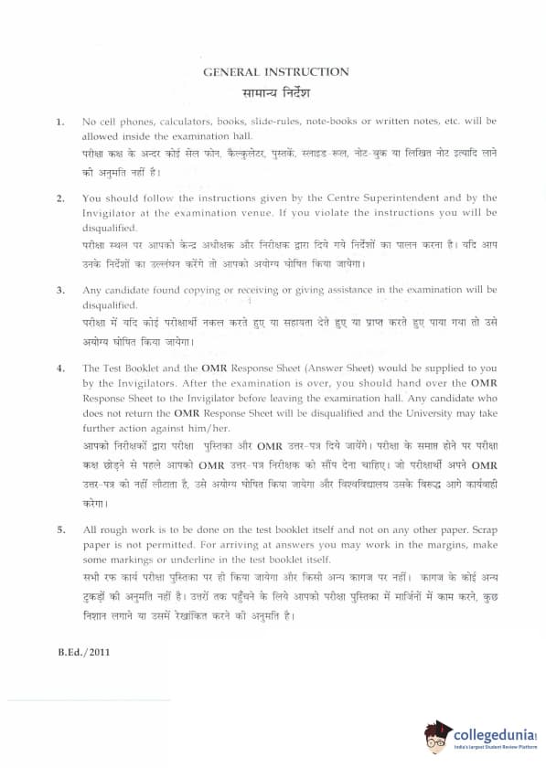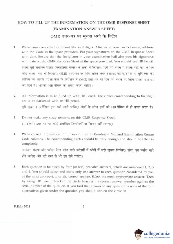 | IGNOU B.Ed. Entrance Exam 2011 Question Paper PDF | IGNOU B.Ed. Entrance Exam 2011 Answer Key |
