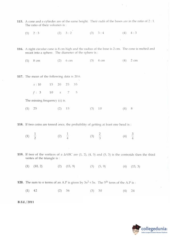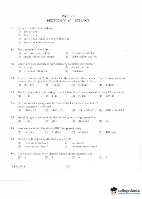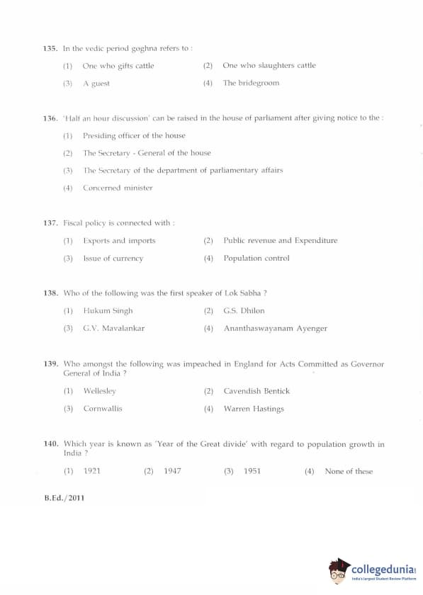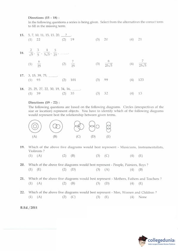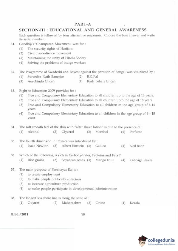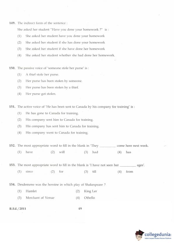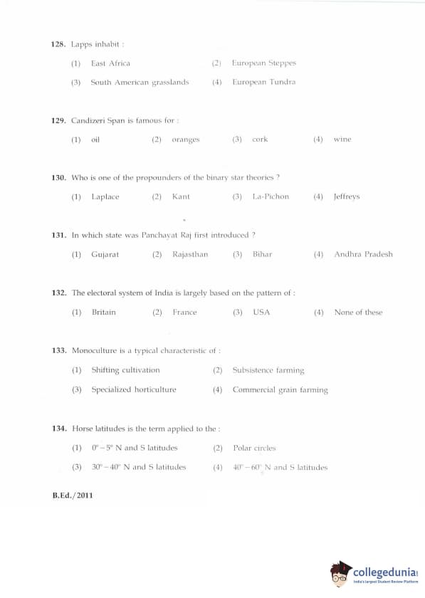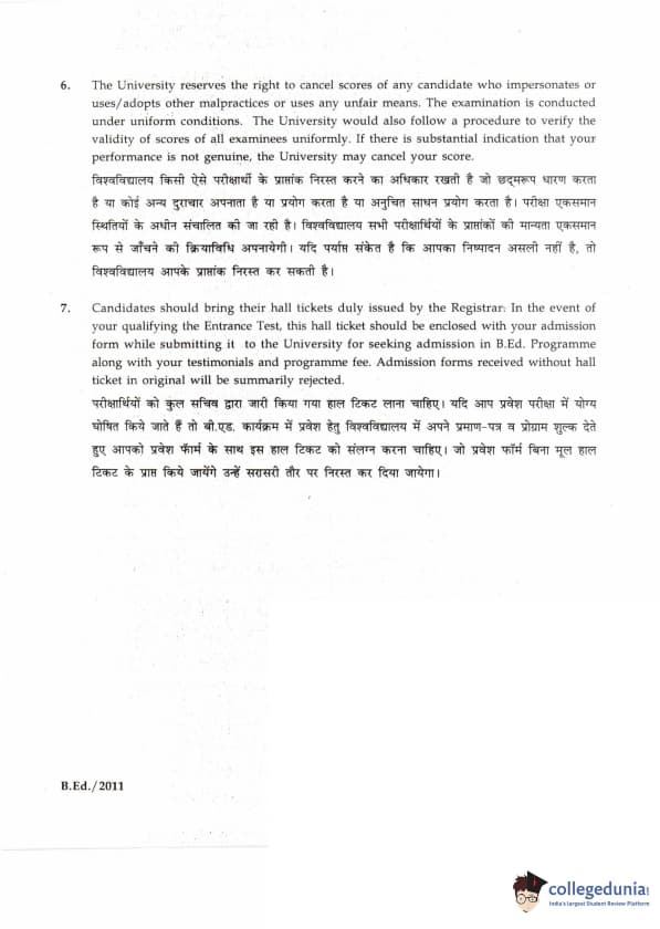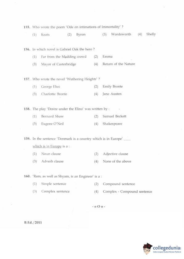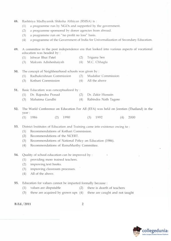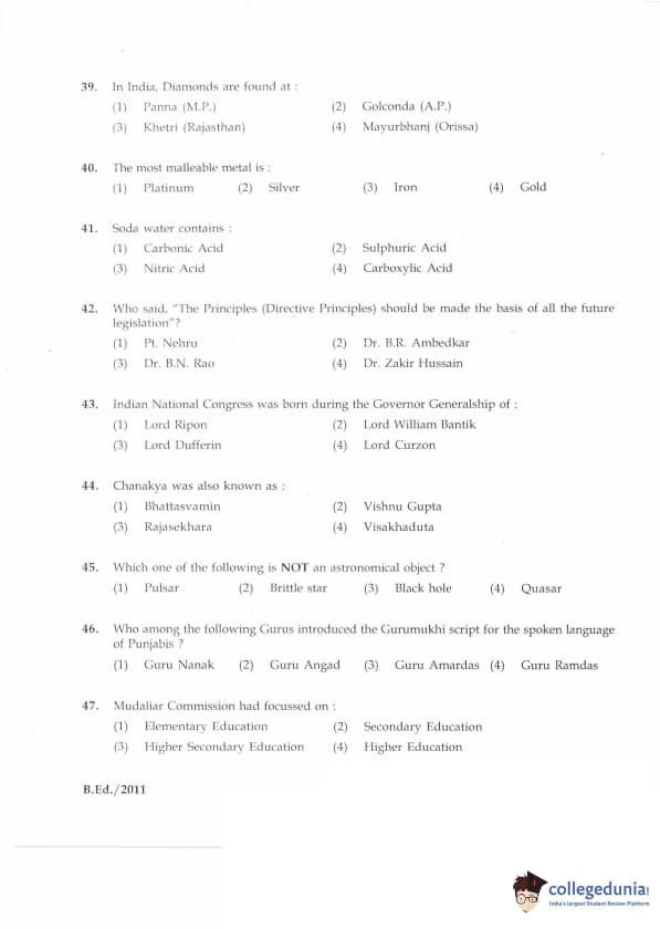 | IGNOU B.Ed. Entrance Exam 2011 Question Paper PDF | IGNOU B.Ed. Entrance Exam 2011 Answer Key |