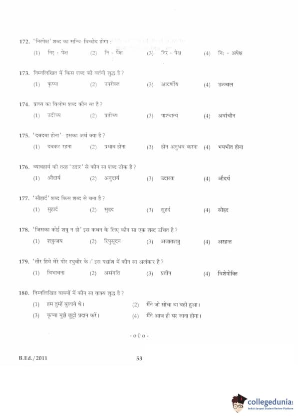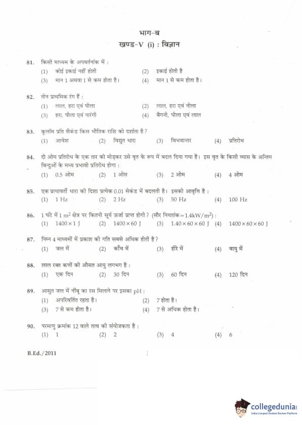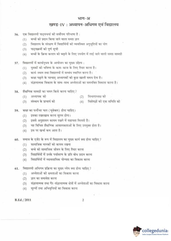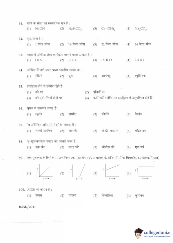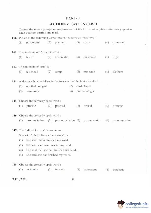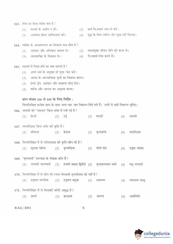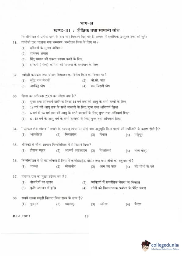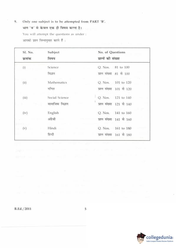 IGNOU B.Ed. Entrance Exam 2011 Question paper with answer key pdf is available for download. The exam was successfully organized by Indira Gandhi National Open University (IGNOU). The question paper comprised a total of 100 questions divided into 5 sections.