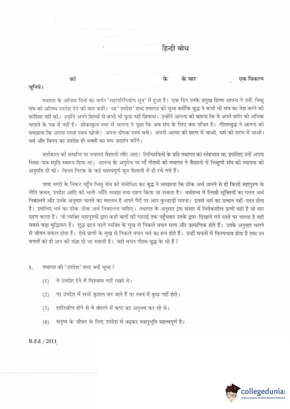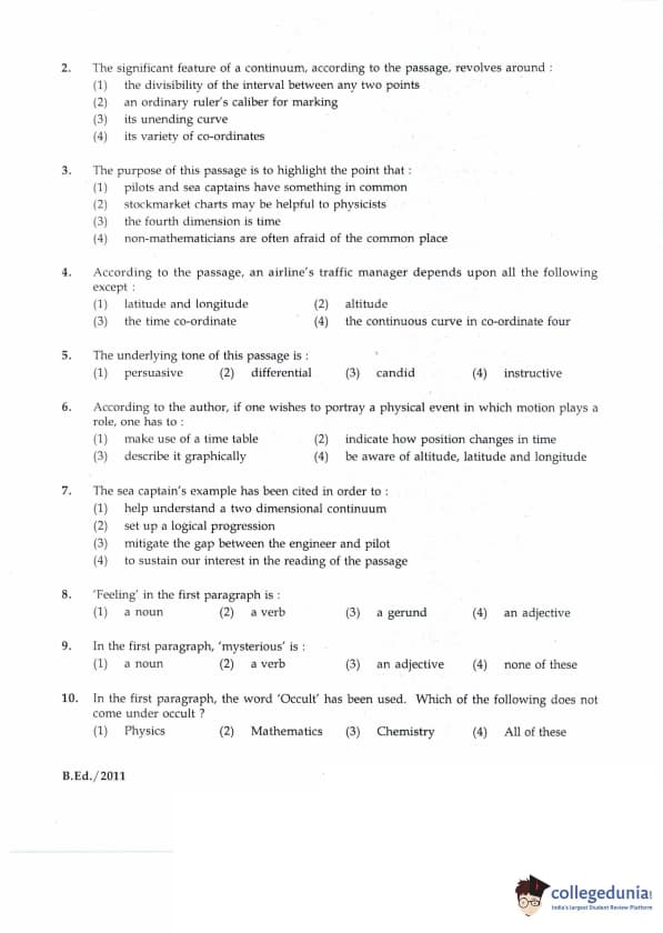 IGNOU B.Ed. Entrance Exam 2011 Question Paper PDF