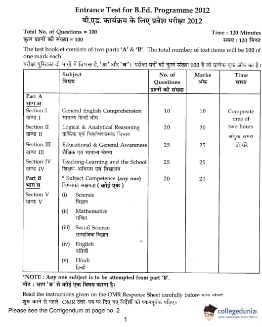 | IGNOU B.Ed. Entrance Exam 2012 Question Paper PDF | IGNOU B.Ed. Entrance Exam 2012 Answer Key |