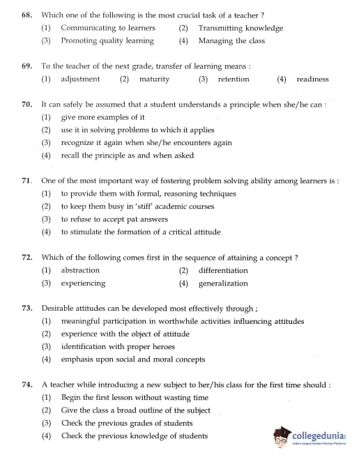 IGNOU B.Ed. Entrance Exam 2012 Question paper with answer key pdf is available for download. The exam was successfully organized by Indira Gandhi National Open University (IGNOU). The question paper comprised a total of 100 questions divided into 5 sections.