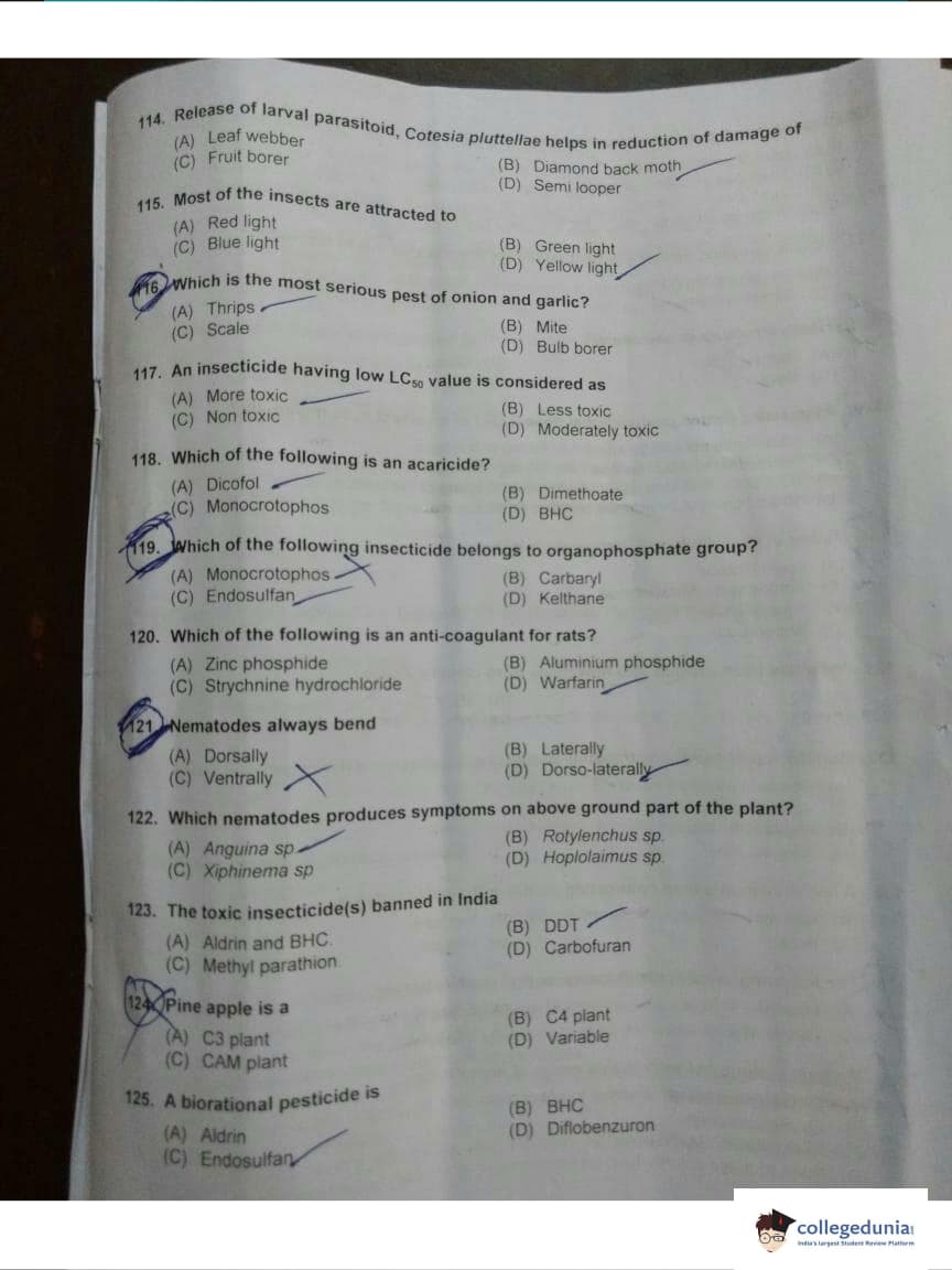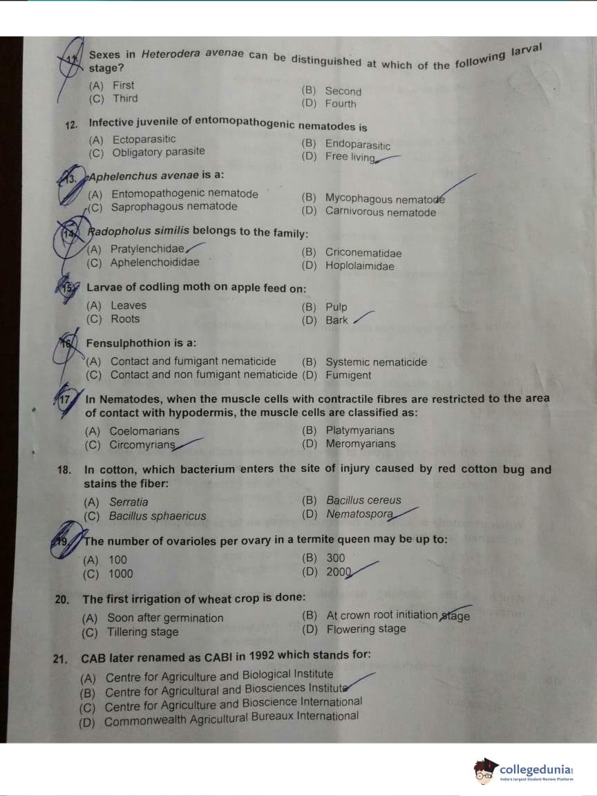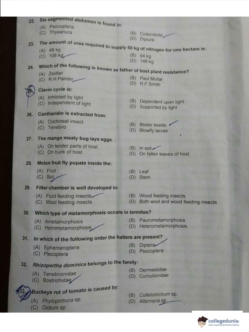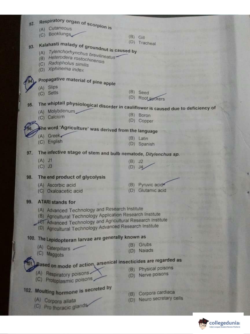 ICAR AIEEA 2018 JRF - Entomology Question paper with answer key pdf conducted on May 13, 2018 is available for download. The exam was successfully organized by Indian Council of Agricultural Research (ICAR). The question paper comprised a total of 160 questions.