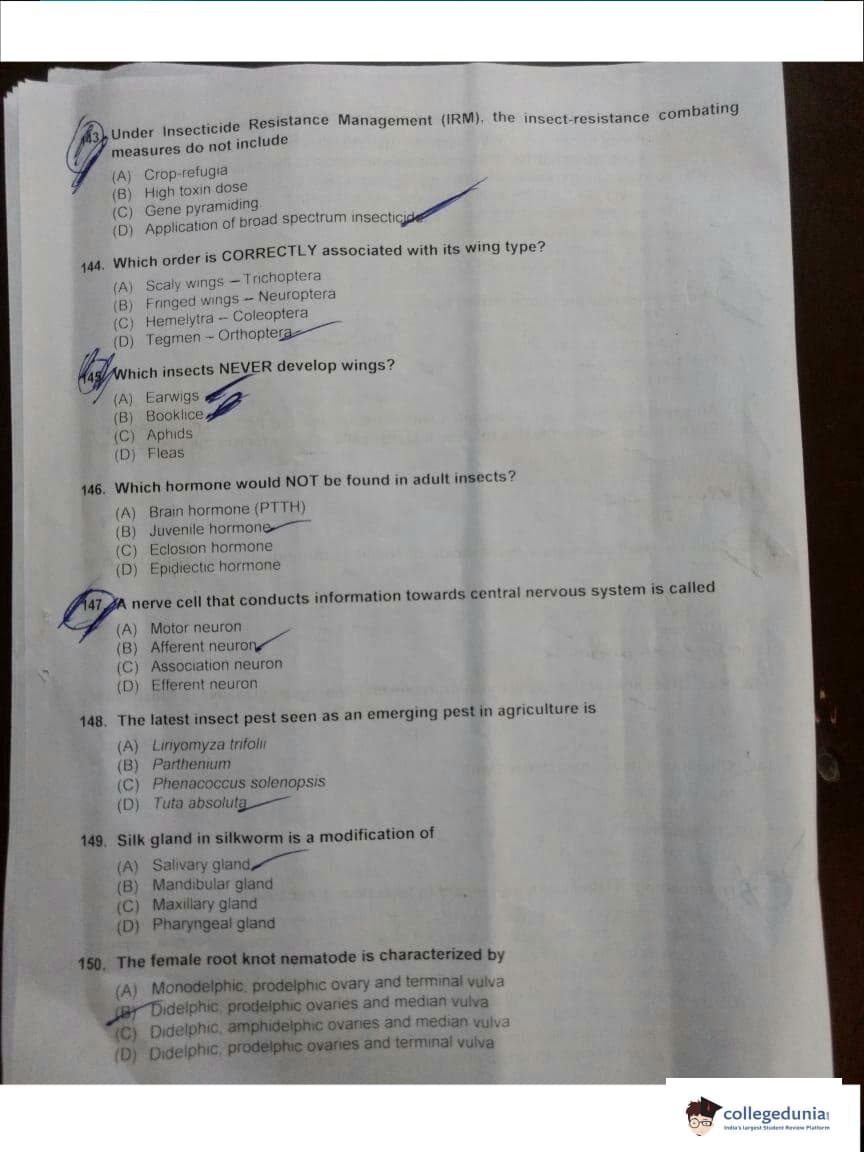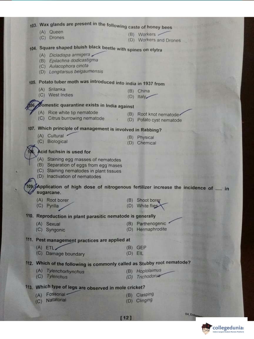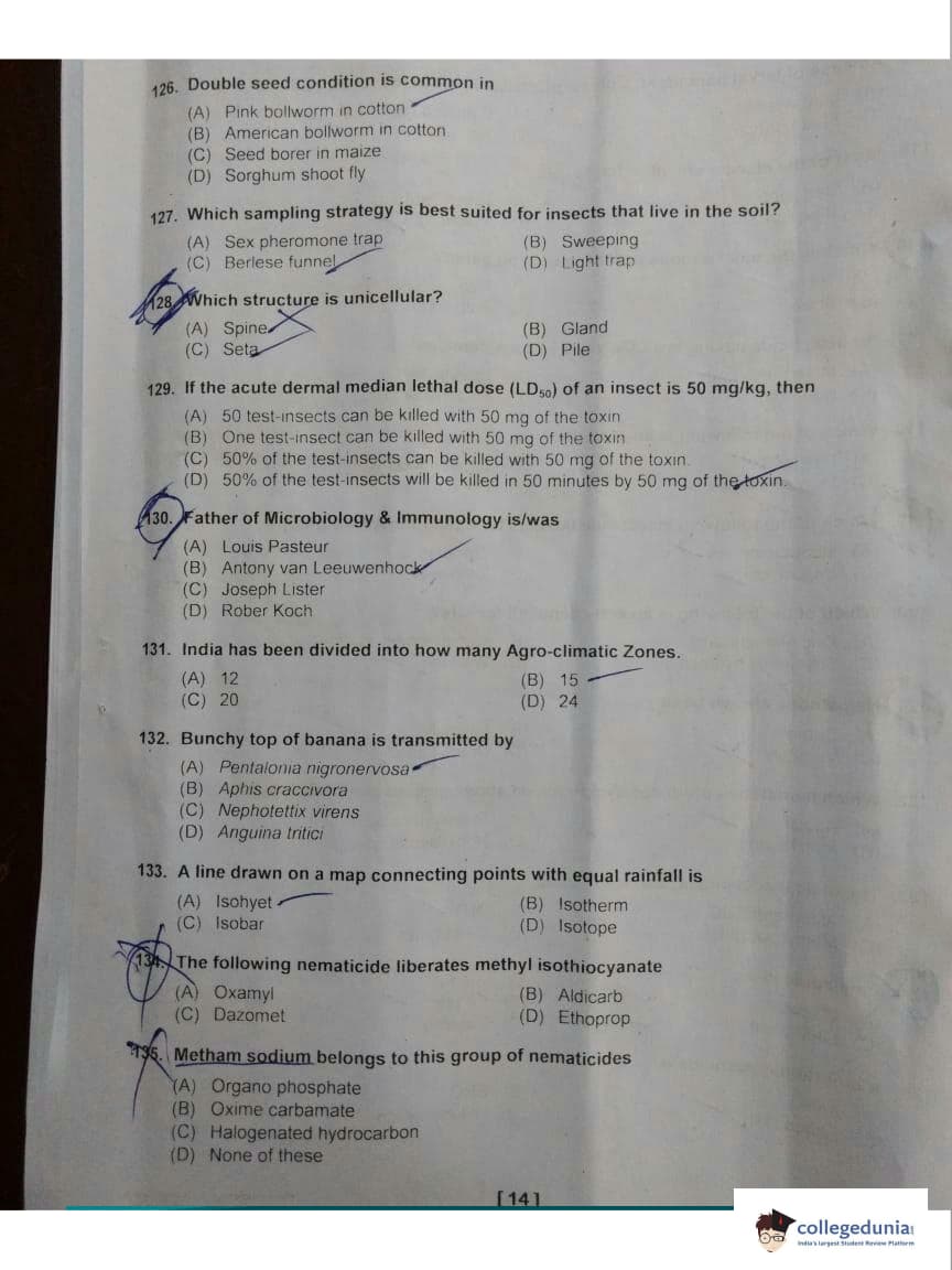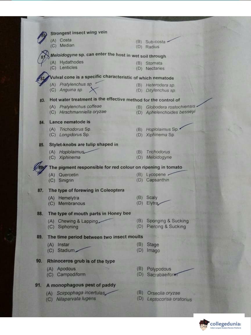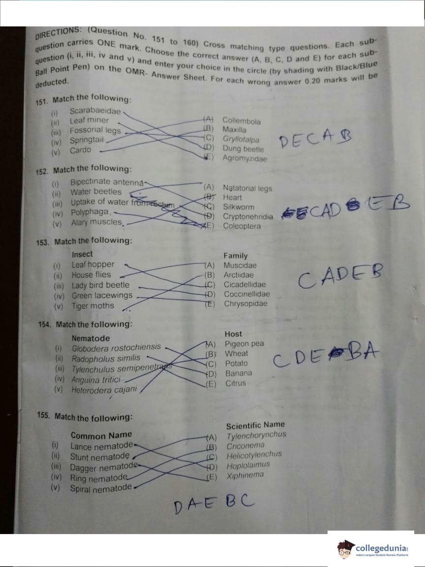 ICAR AIEEA 2018 JRF - Entomology Question paper with answer key pdf conducted on May 13, 2018 is available for download. The exam was successfully organized by Indian Council of Agricultural Research (ICAR). The question paper comprised a total of 160 questions.