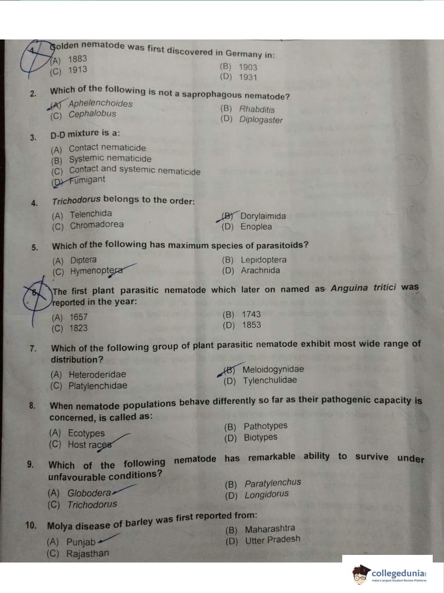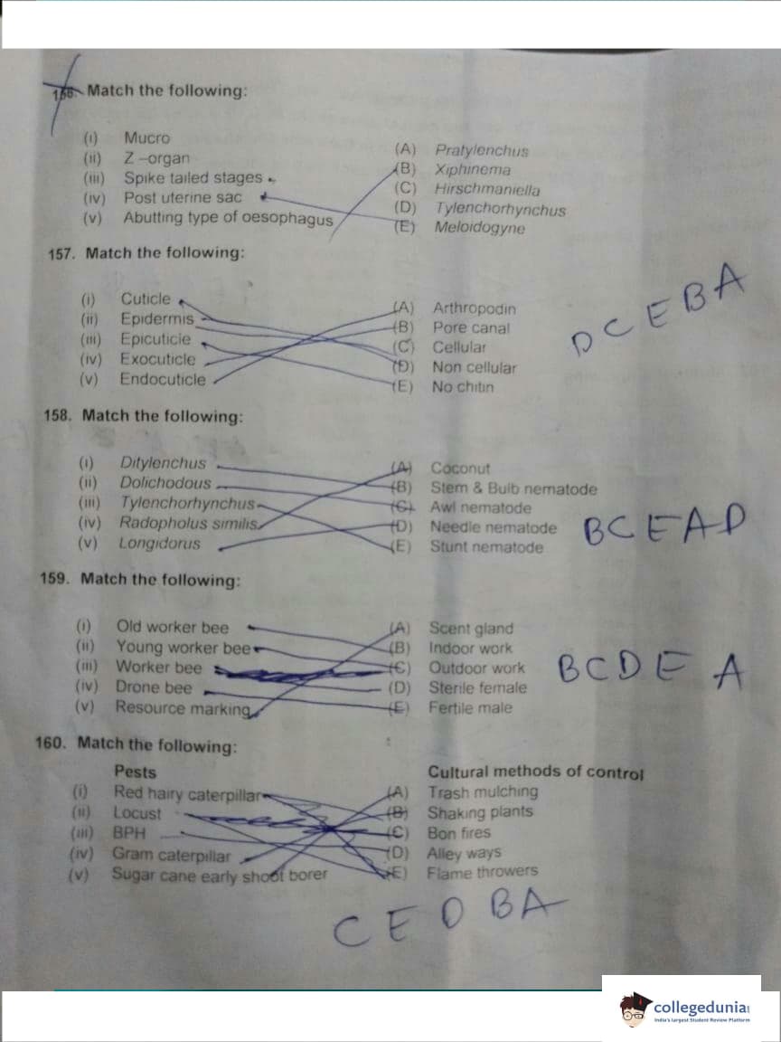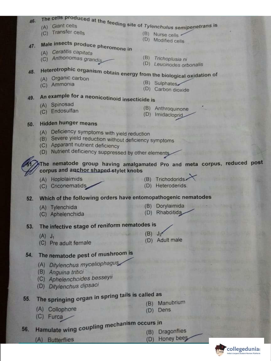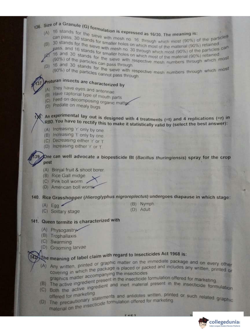 ICAR AIEEA 2018 JRF - Entomology Question paper with answer key pdf conducted on May 13, 2018 is available for download. The exam was successfully organized by Indian Council of Agricultural Research (ICAR). The question paper comprised a total of 160 questions.