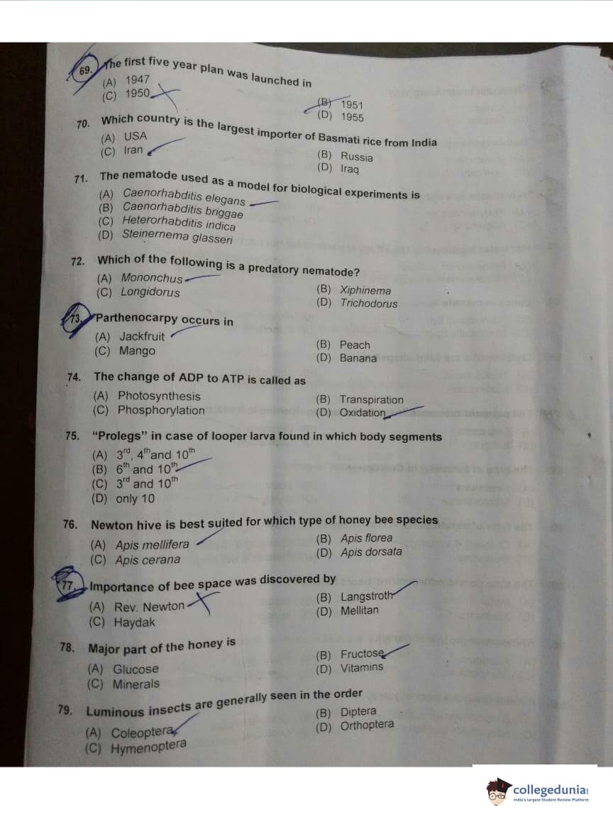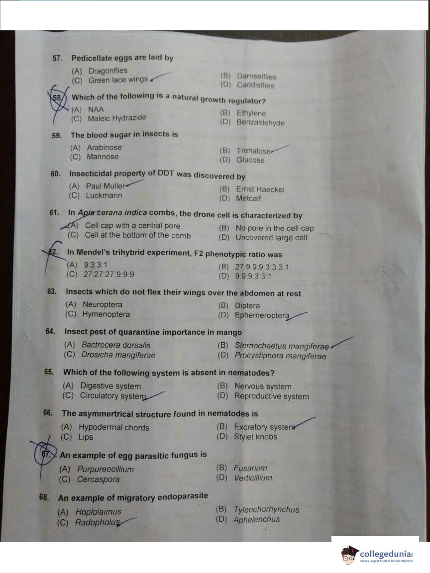 ICAR AIEEA 2018 JRF - Entomology Question Paper with Answer Key PDFs