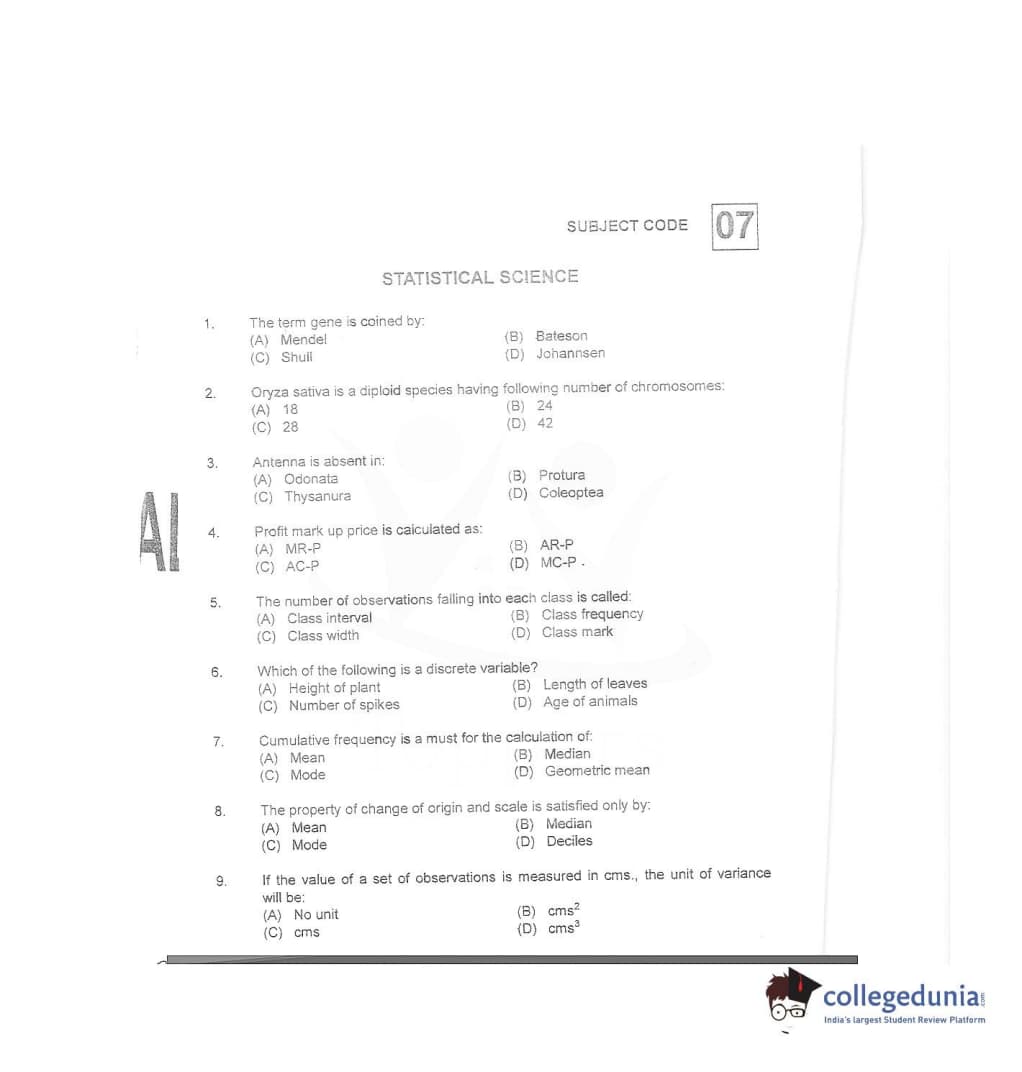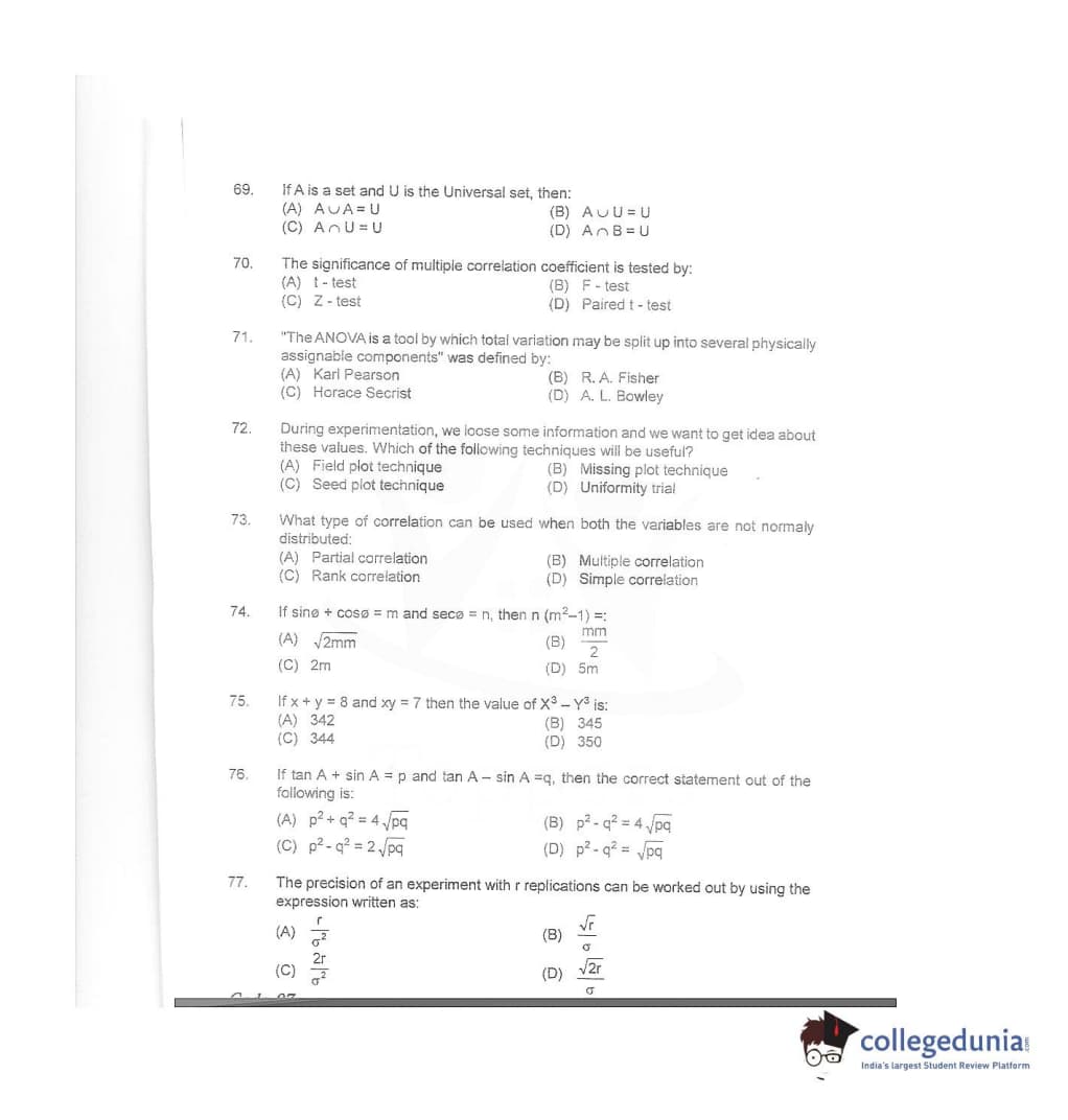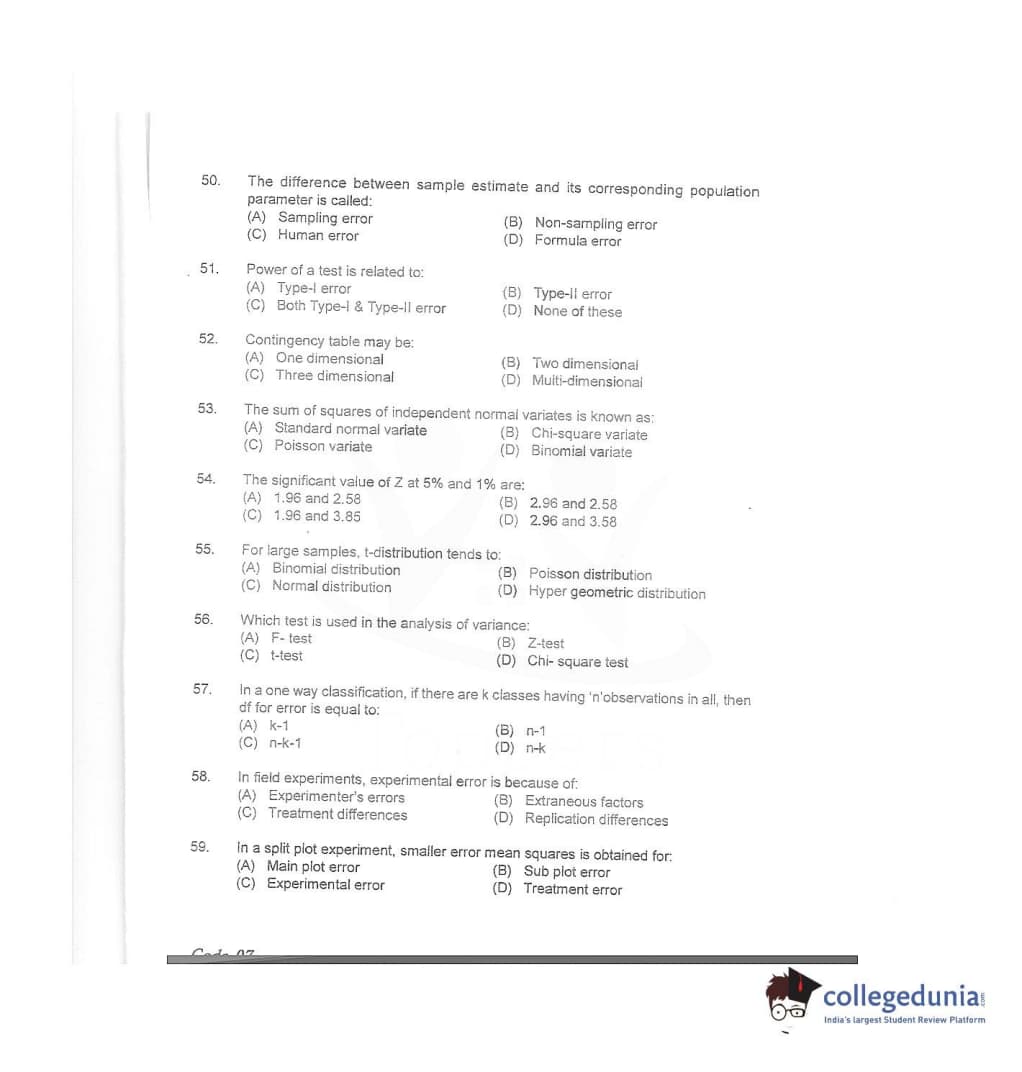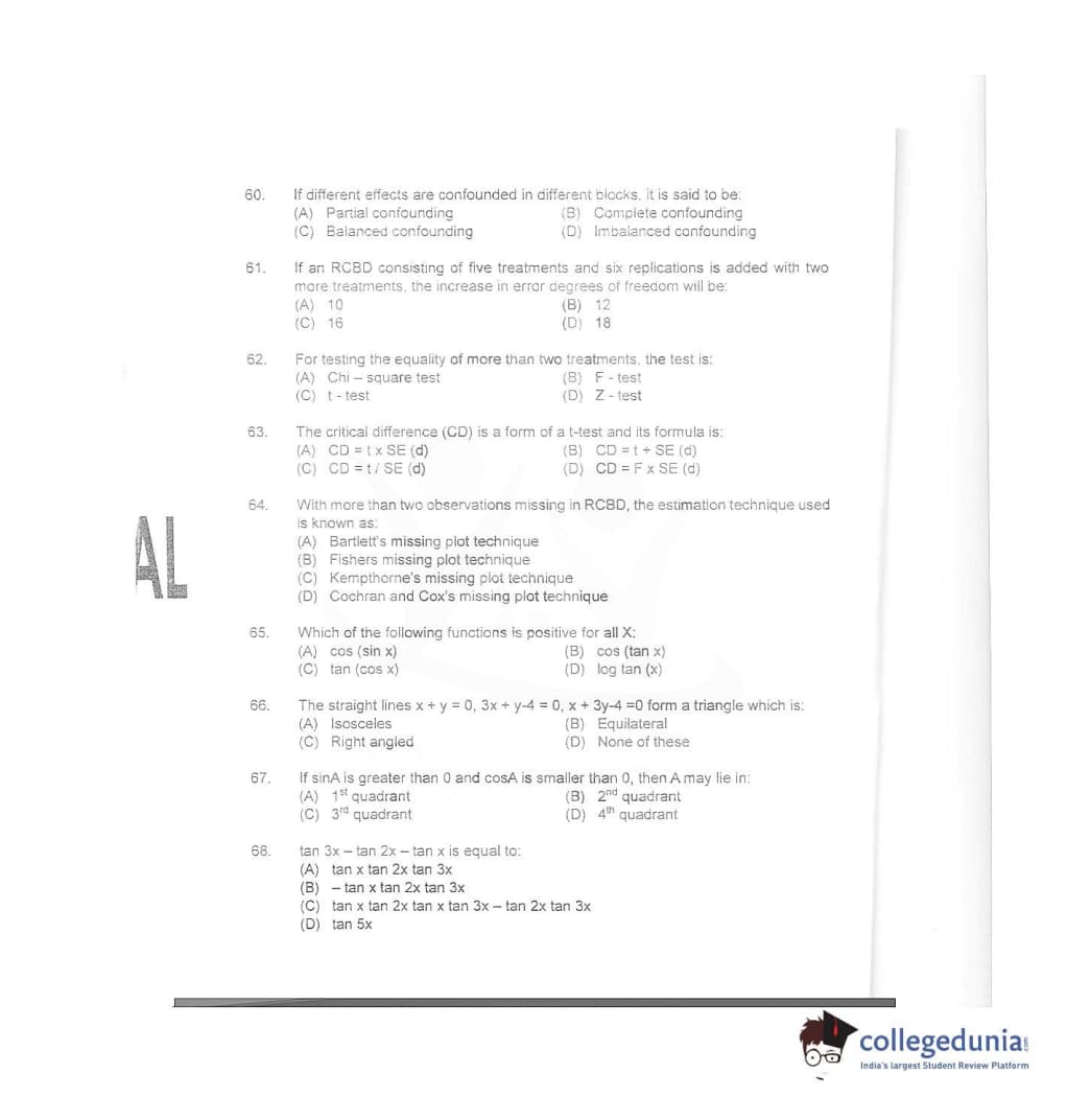 | ICAR AIEEA 2018 JRF - Statistical Science Question Paper PDF | ICAR AIEEA 2018 JRF - Statistical Science Answer Key PDF |