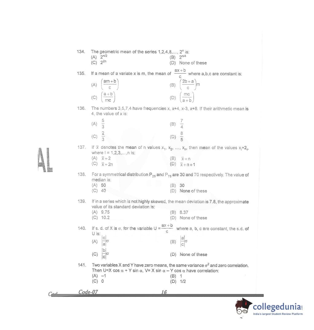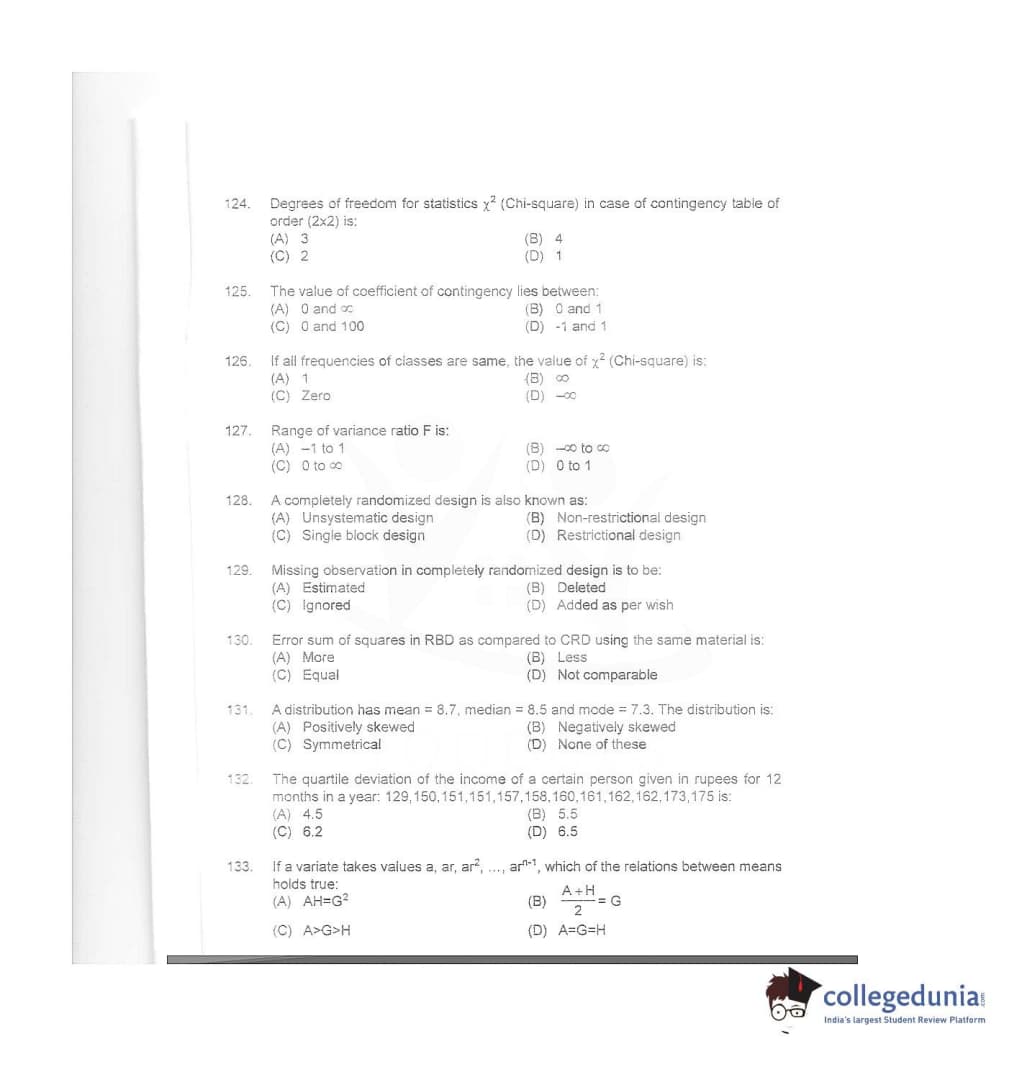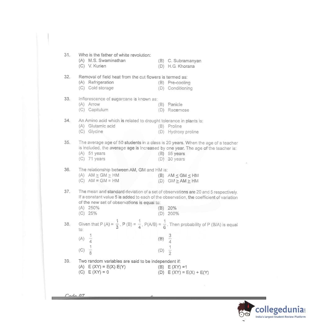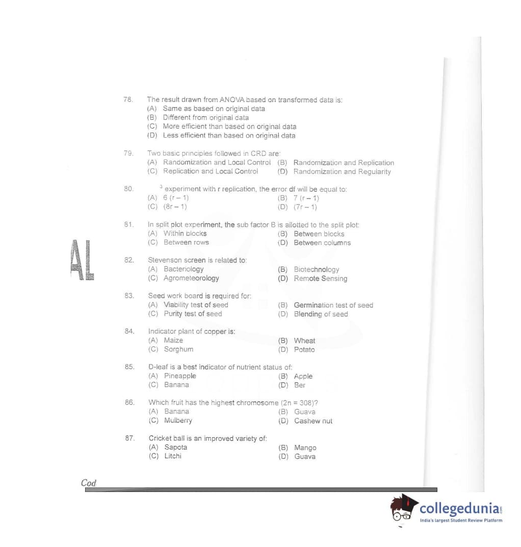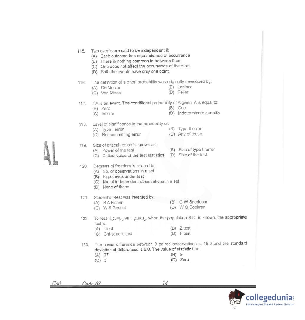 | ICAR AIEEA 2018 JRF - Statistical Science Question Paper PDF | ICAR AIEEA 2018 JRF - Statistical Science Answer Key PDF |