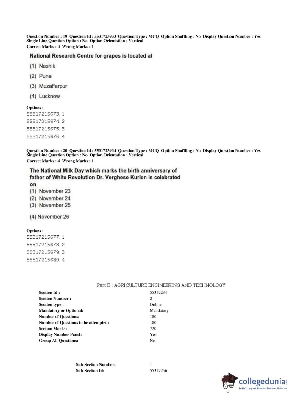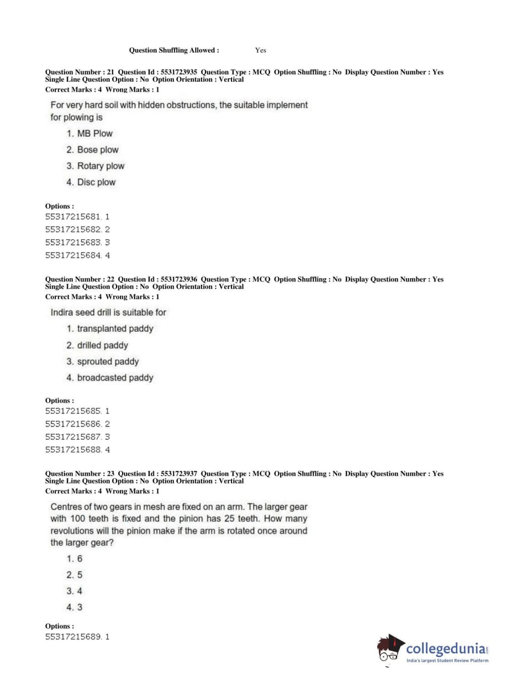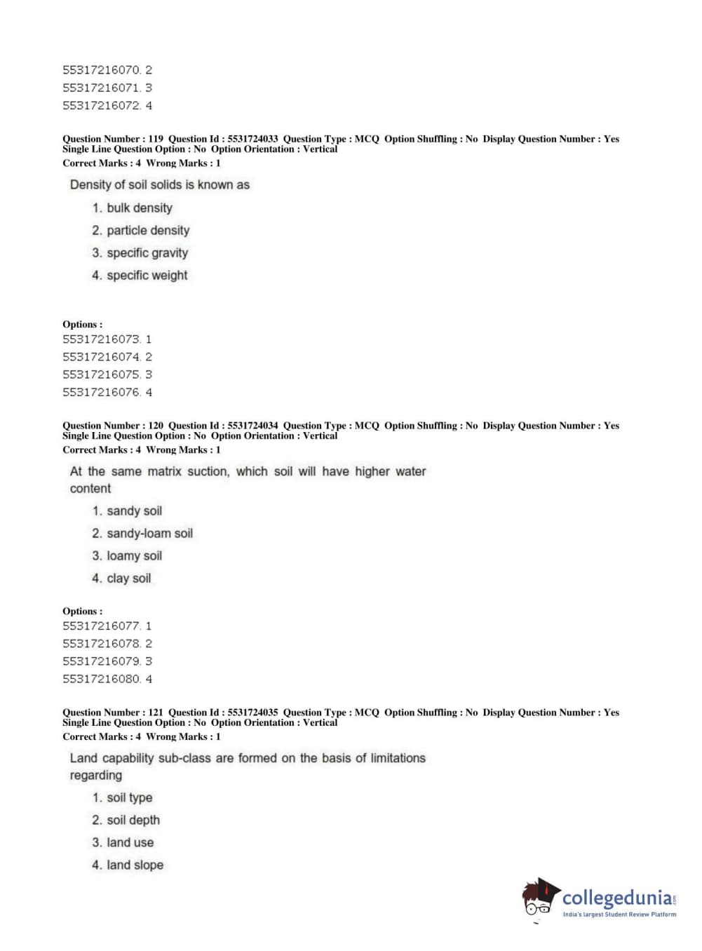 | ICAR AIEEA 2019 JRF - AGRICULTURE ENGINEERING AND TECHNOLOGY Question Paper PDF | ICAR AIEEA 2019 JRF - AGRICULTURE ENGINEERING AND TECHNOLOGY Answer Key PDF |