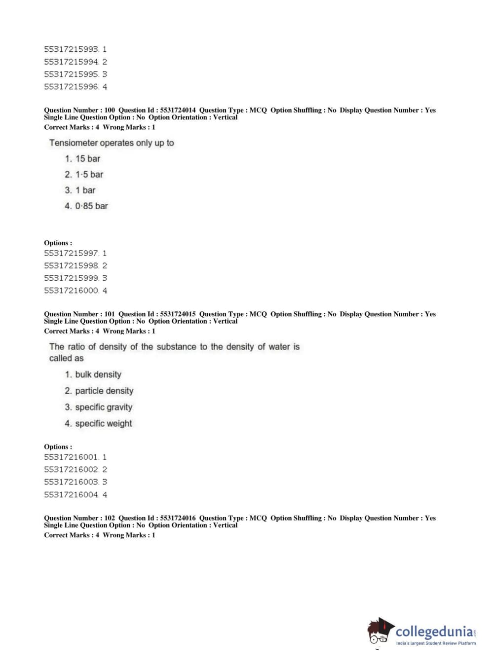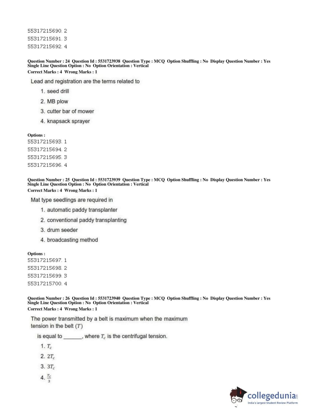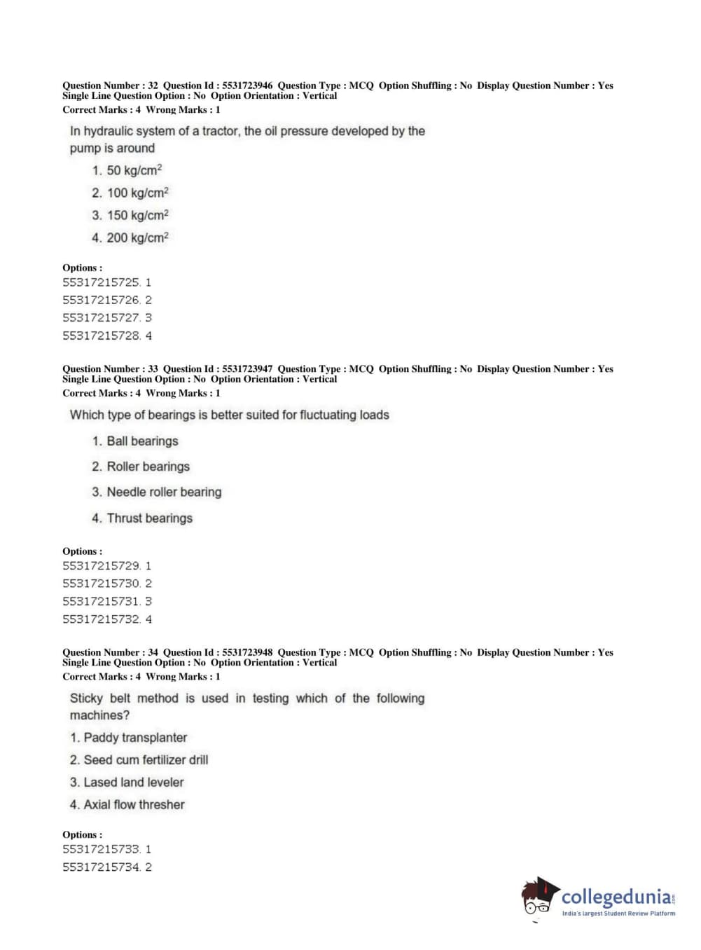 | ICAR AIEEA 2019 JRF - AGRICULTURE ENGINEERING AND TECHNOLOGY Question Paper PDF | ICAR AIEEA 2019 JRF - AGRICULTURE ENGINEERING AND TECHNOLOGY Answer Key PDF |