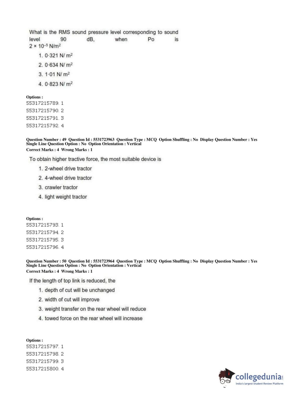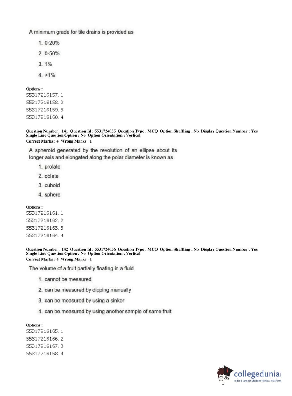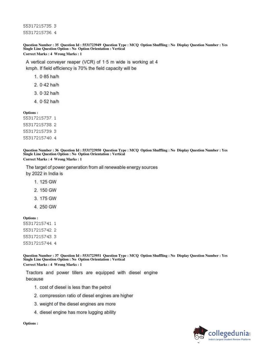 ICAR AIEEA 2019 JRF - AGRICULTURE ENGINEERING AND TECHNOLOGY Question Paper with Answer Key PDFs Afternoon Session