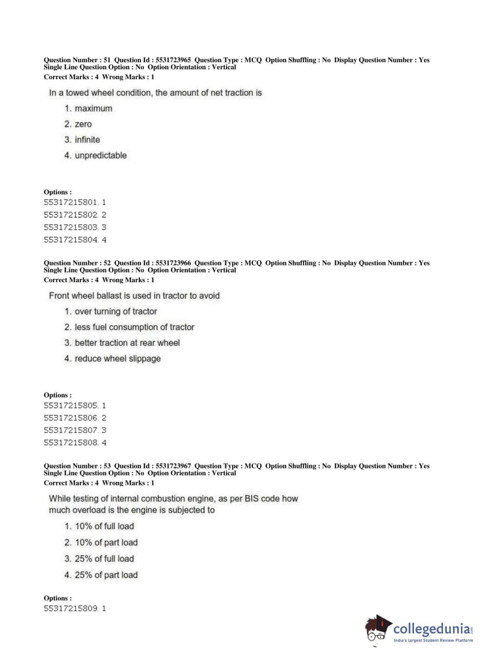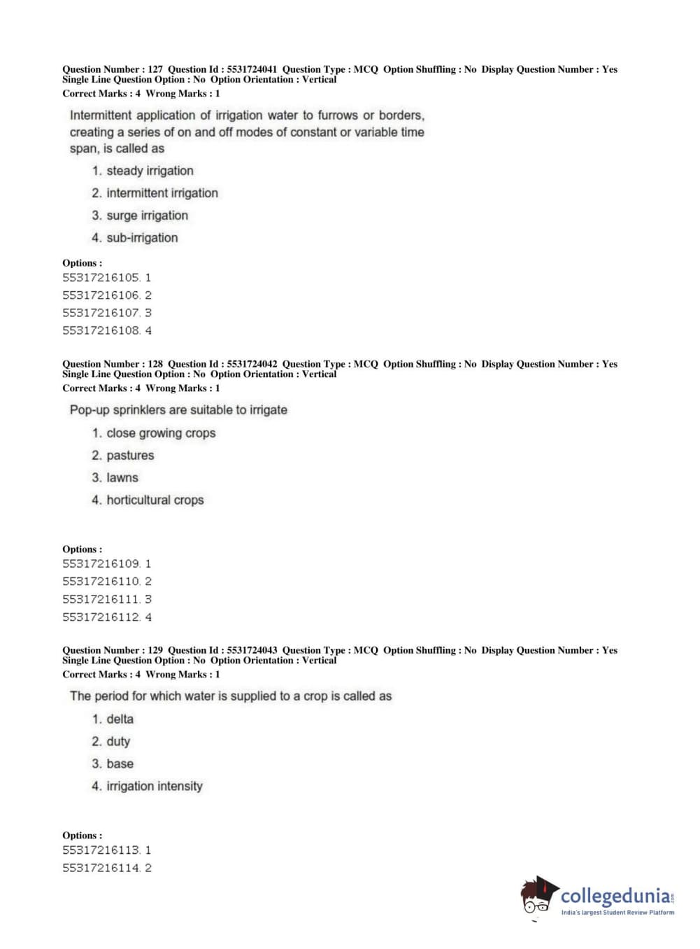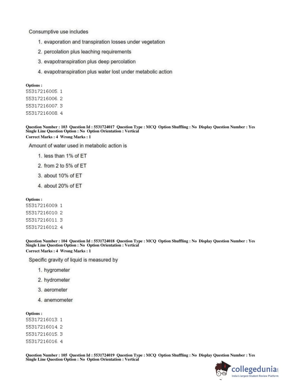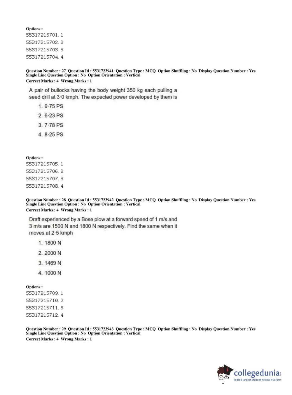 ICAR AIEEA 2019 JRF - AGRICULTURE ENGINEERING AND TECHNOLOGY Question Paper with Answer Key PDFs Afternoon Session