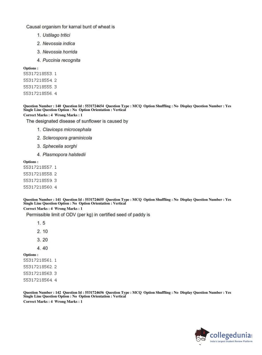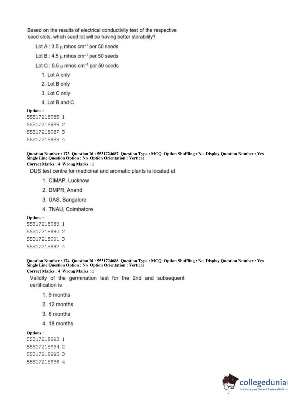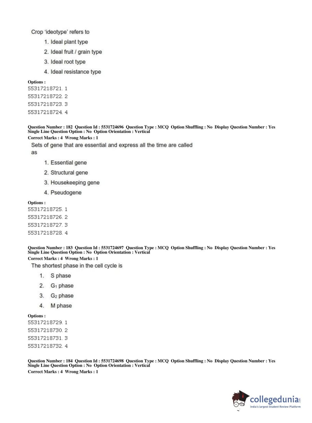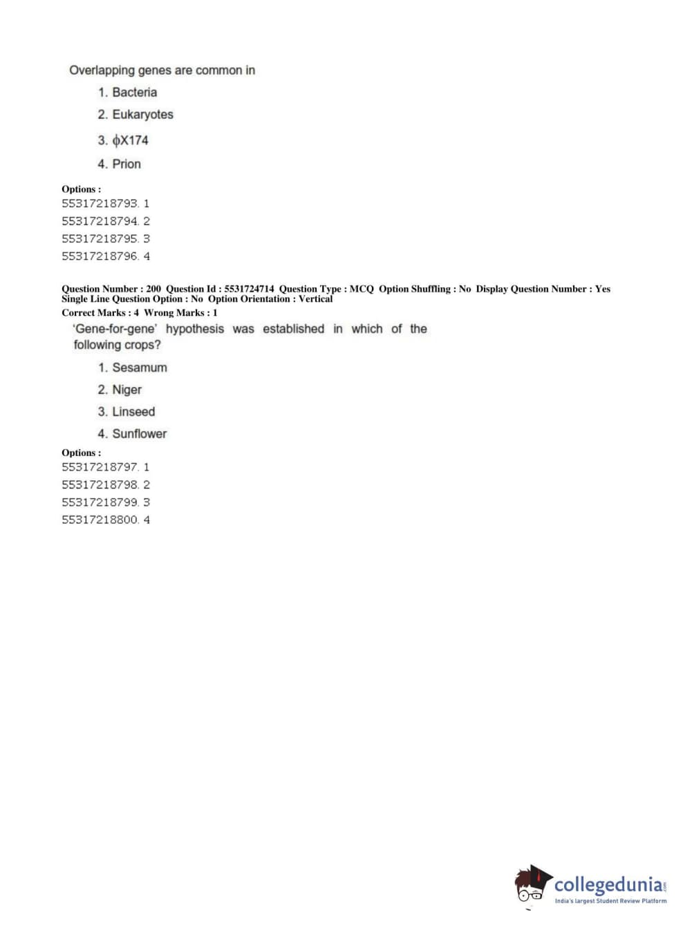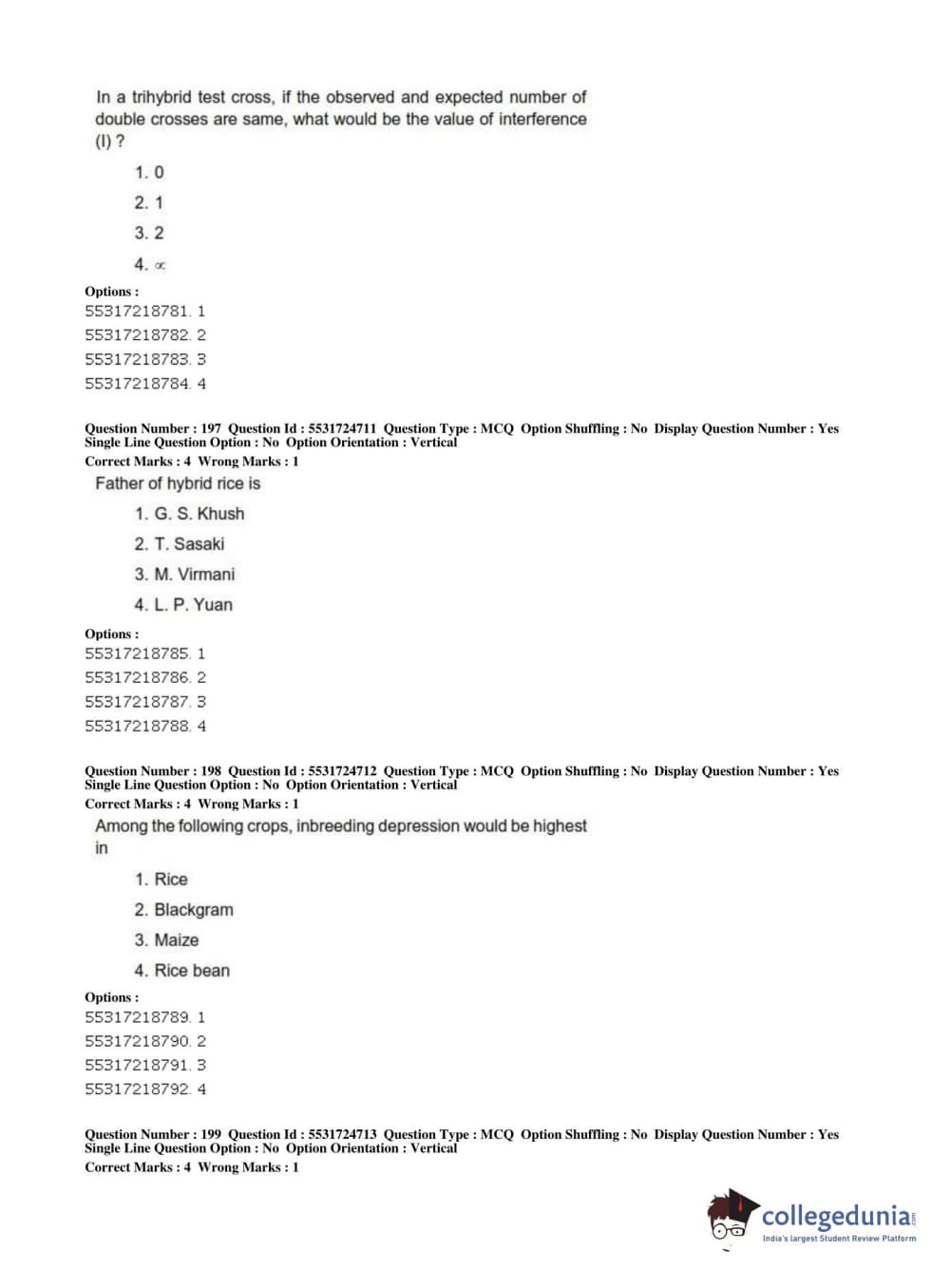 ICAR AIEEA 2019 JRF - CROP SCIENCES I Question paper with answer key pdf conducted on July 1, 2019 in Afternoon Session is available for download. The exam was successfully organized by National Testing Agency (NTA). The question paper comprised a total of 200 questions.