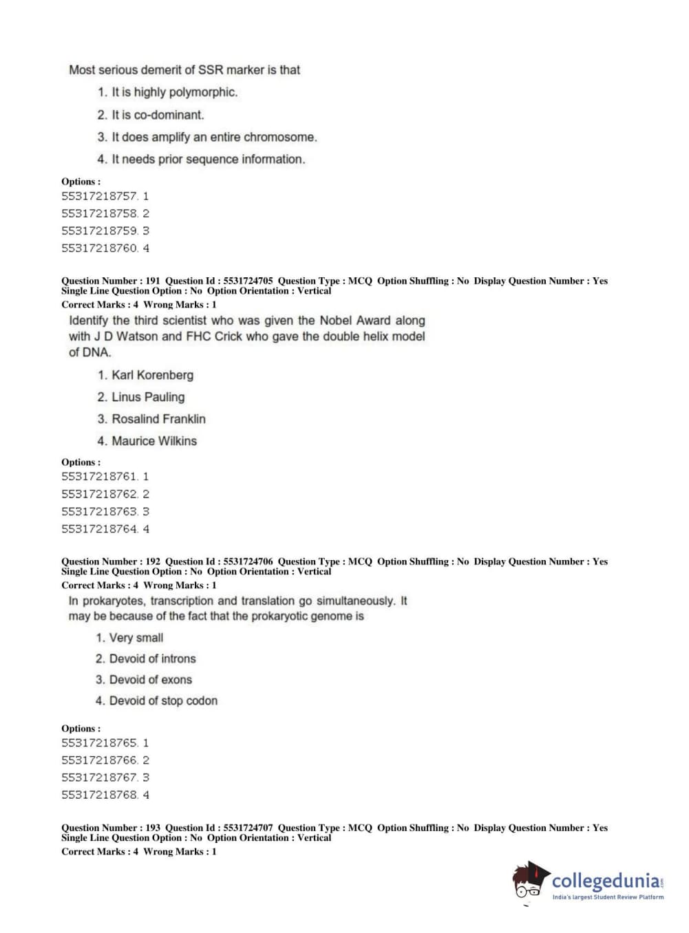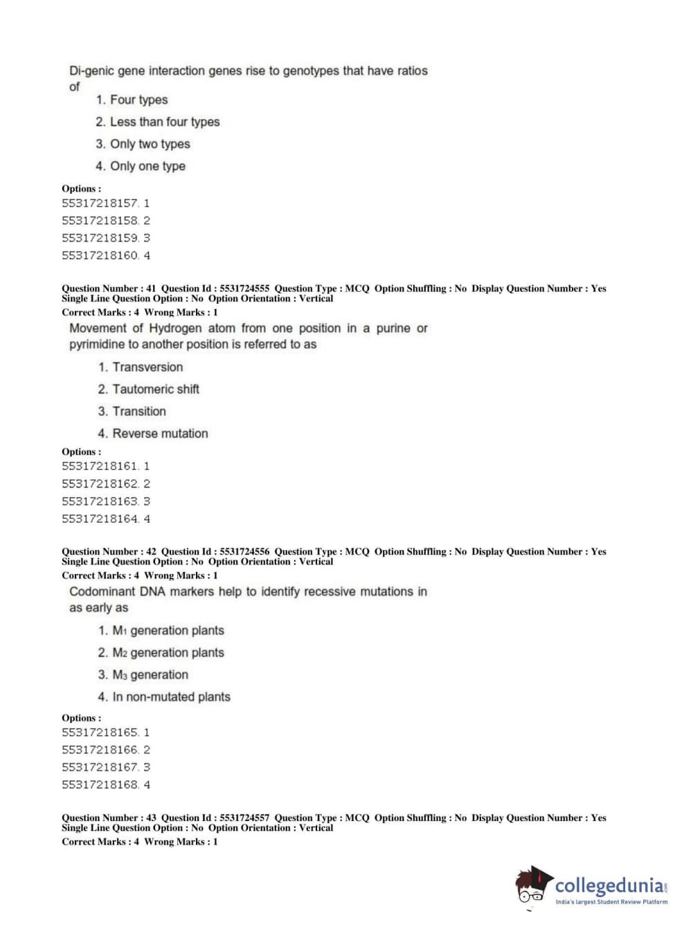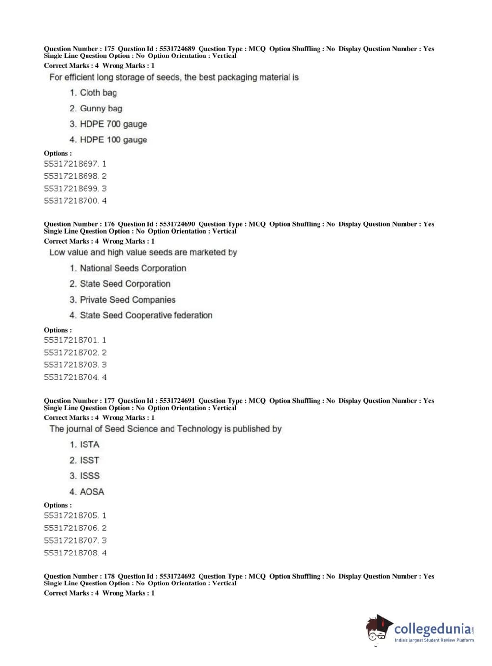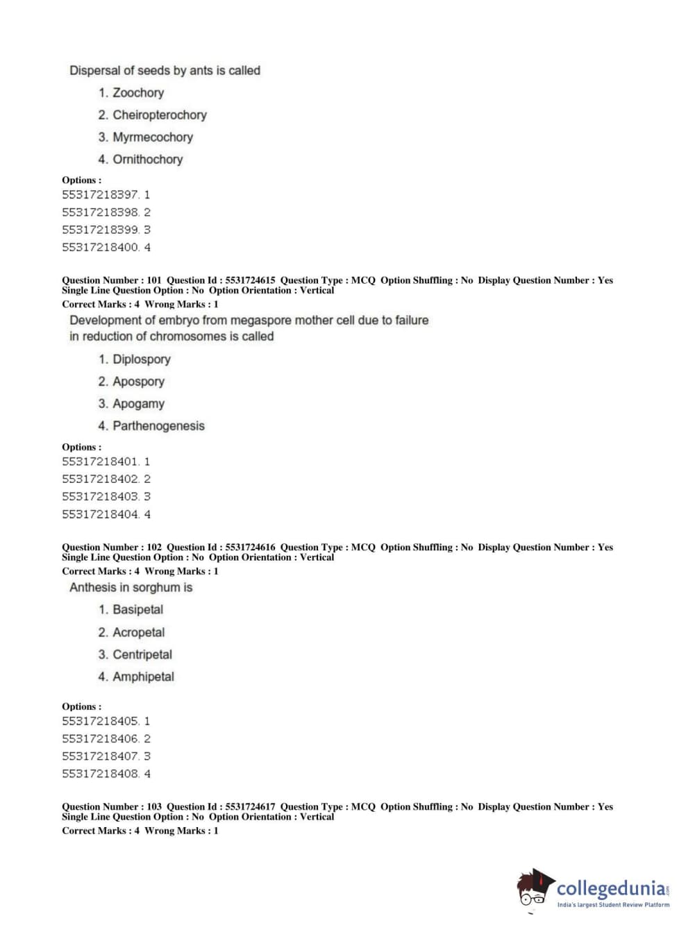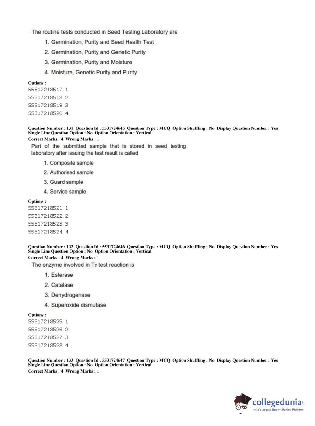 ICAR AIEEA 2019 JRF - CROP SCIENCES I Question paper with answer key pdf conducted on July 1, 2019 in Afternoon Session is available for download. The exam was successfully organized by National Testing Agency (NTA). The question paper comprised a total of 200 questions.