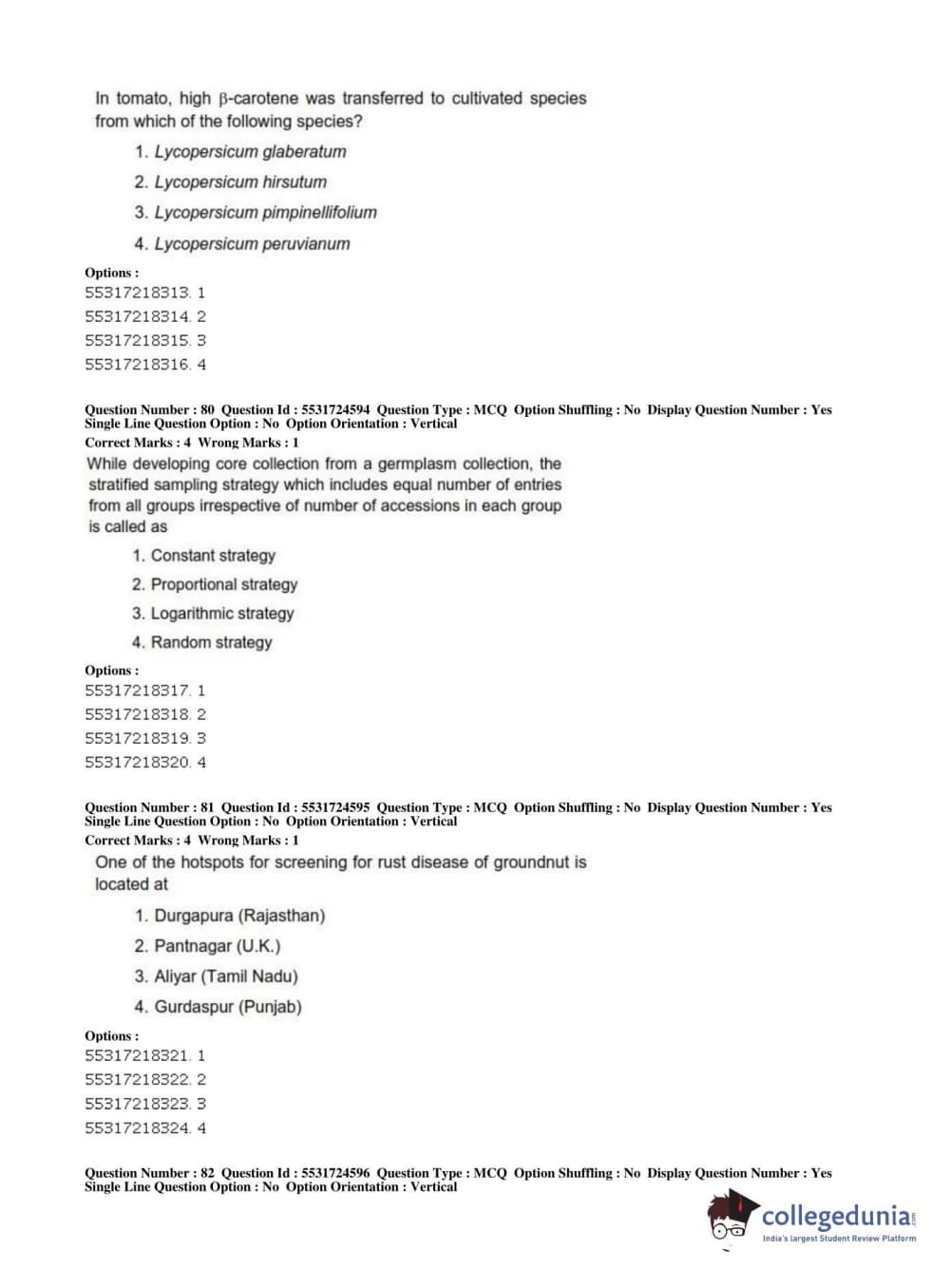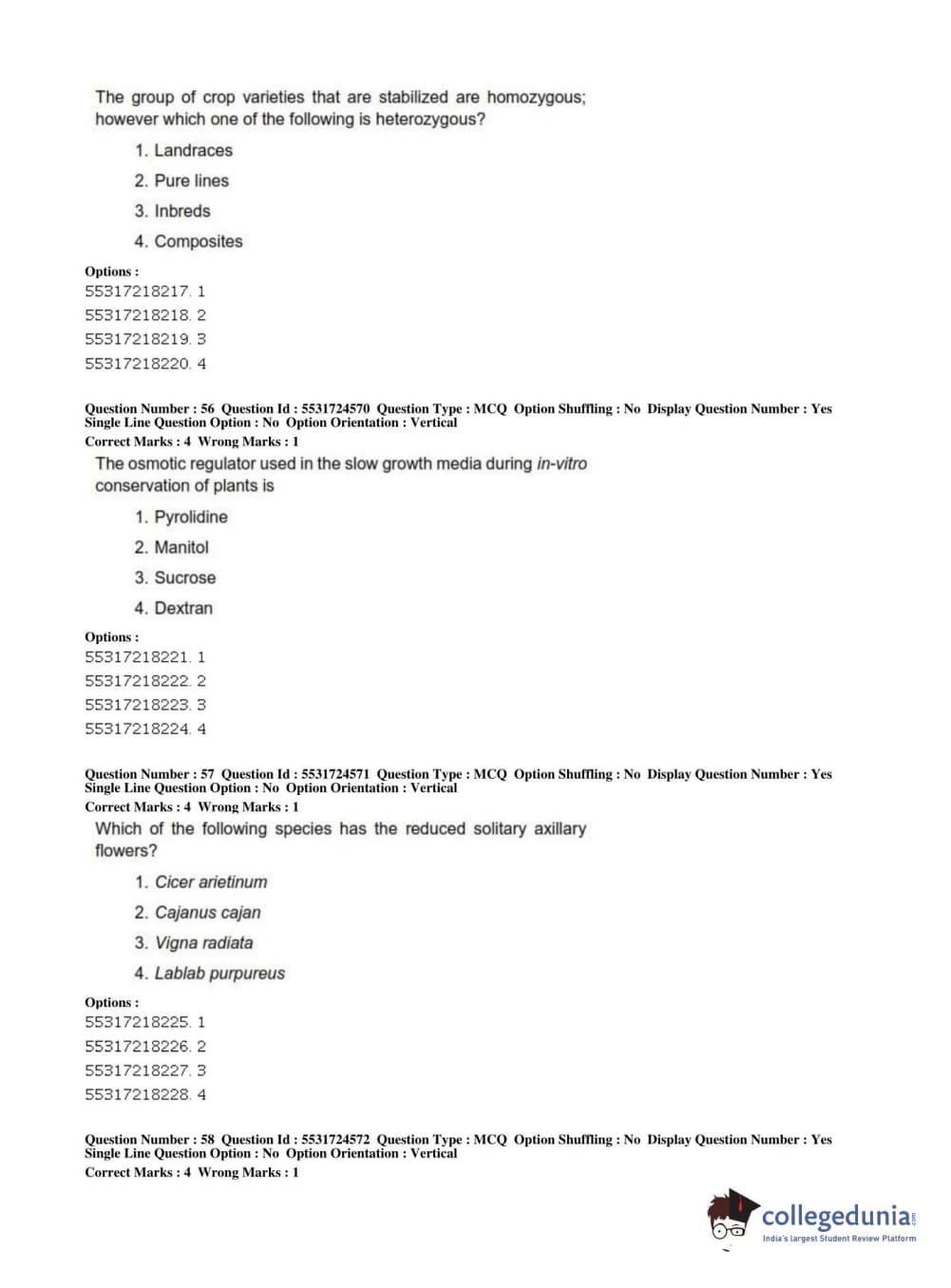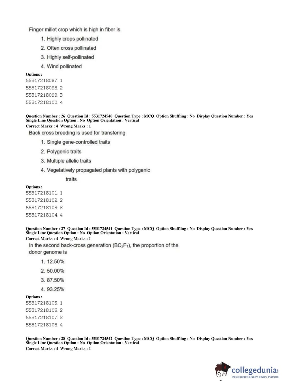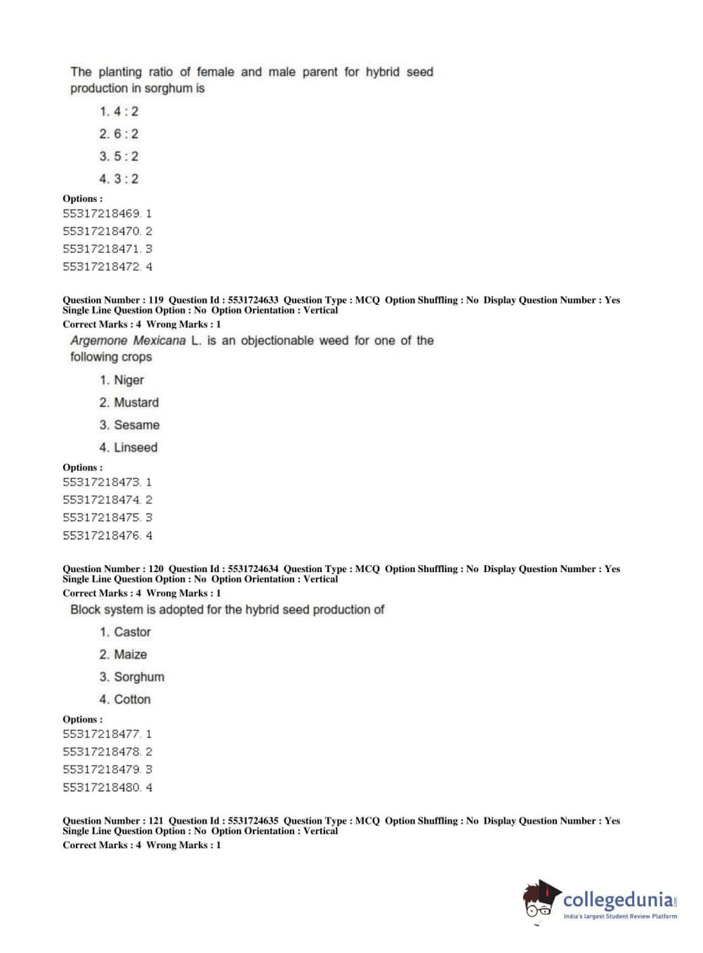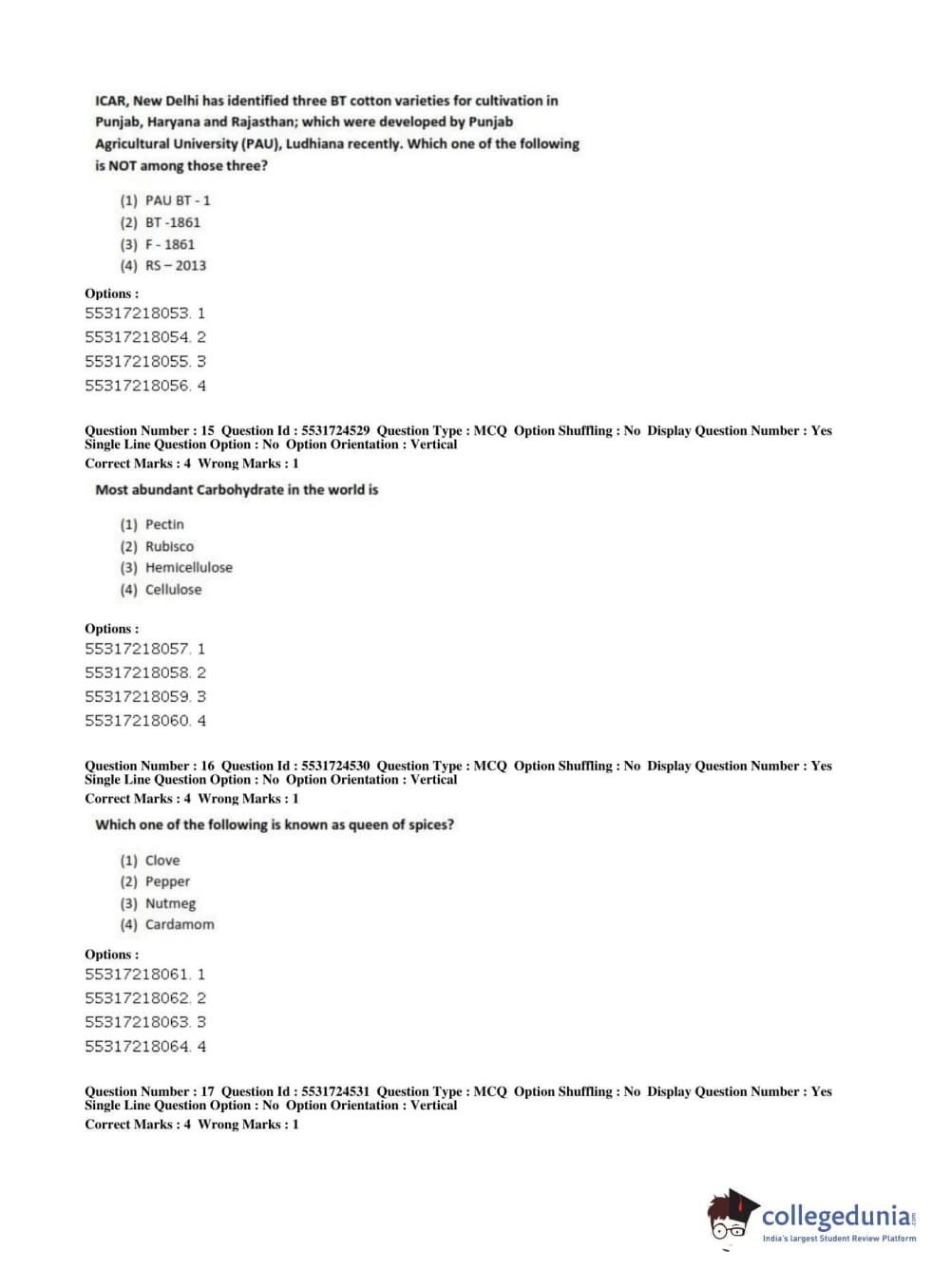 ICAR AIEEA 2019 JRF - CROP SCIENCES I Question Paper with Answer Key PDFs Afternoon Session